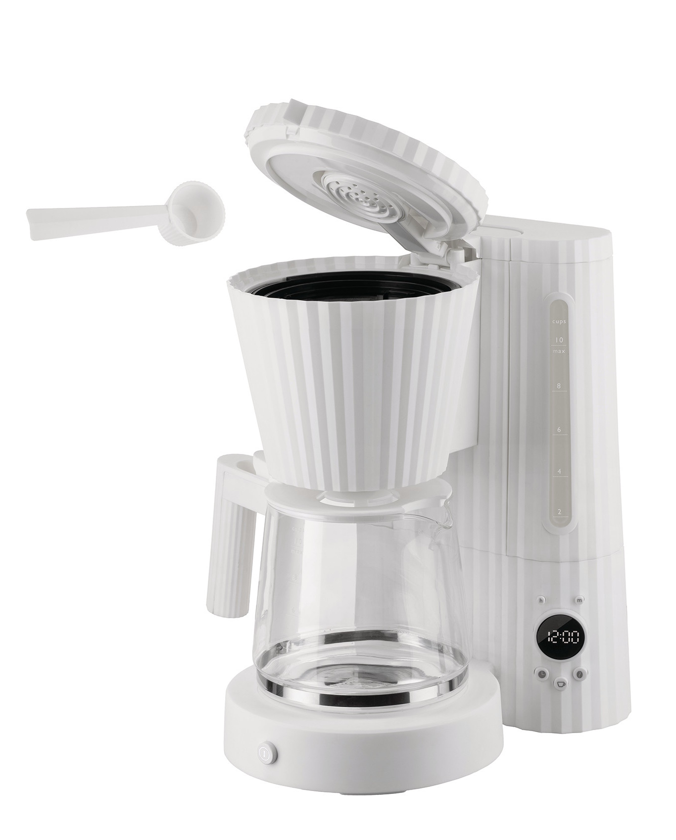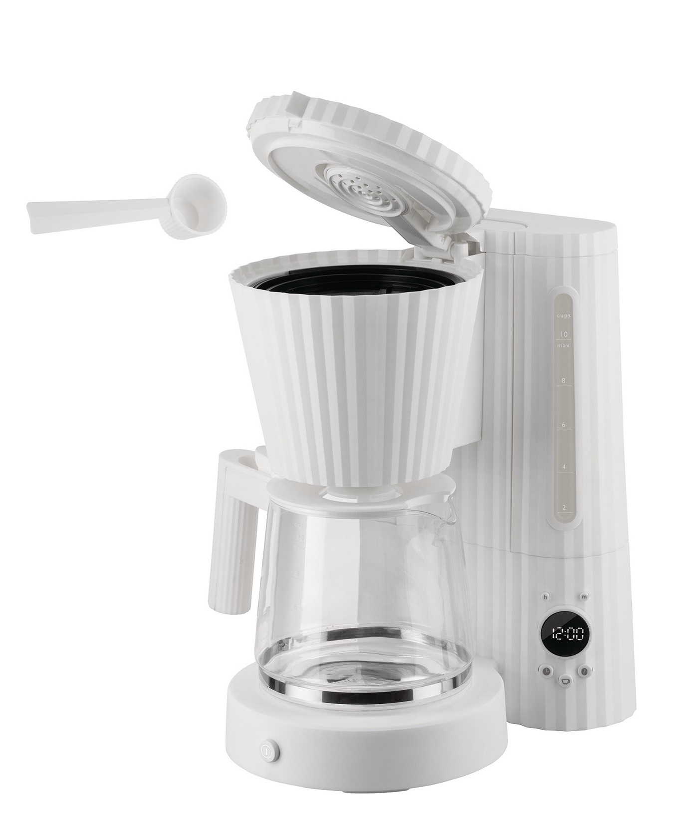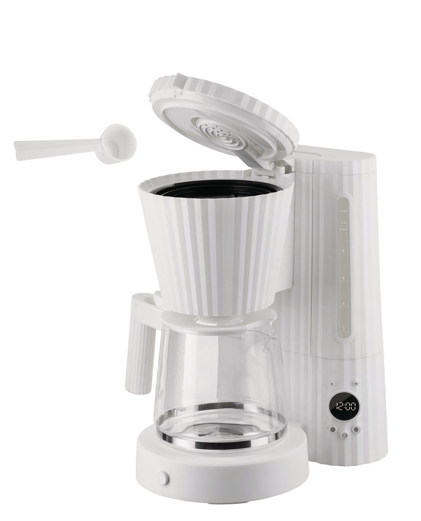 Perfekt, um den Morgen stilvoll zu genießen - die Plissé Filterkaffeemaschine von Alessi. Plissé ist eine aus der Mode bekannte Falttechnik, die sich zeitloser Beliebtheit erfreut. Der Designer Michele De Lucchi hat sich davon inspirieren lassen und für die Plissé-Kollektion von Alessi eine Kaffeemaschine entworfen, die alles andere als nur funktional ist. Wer eine Filterkaffeemaschine sucht, die hochwertig verarbeitet ist und auch optisch etwas hermacht, ist bei Alessi an der richtigen Adresse.