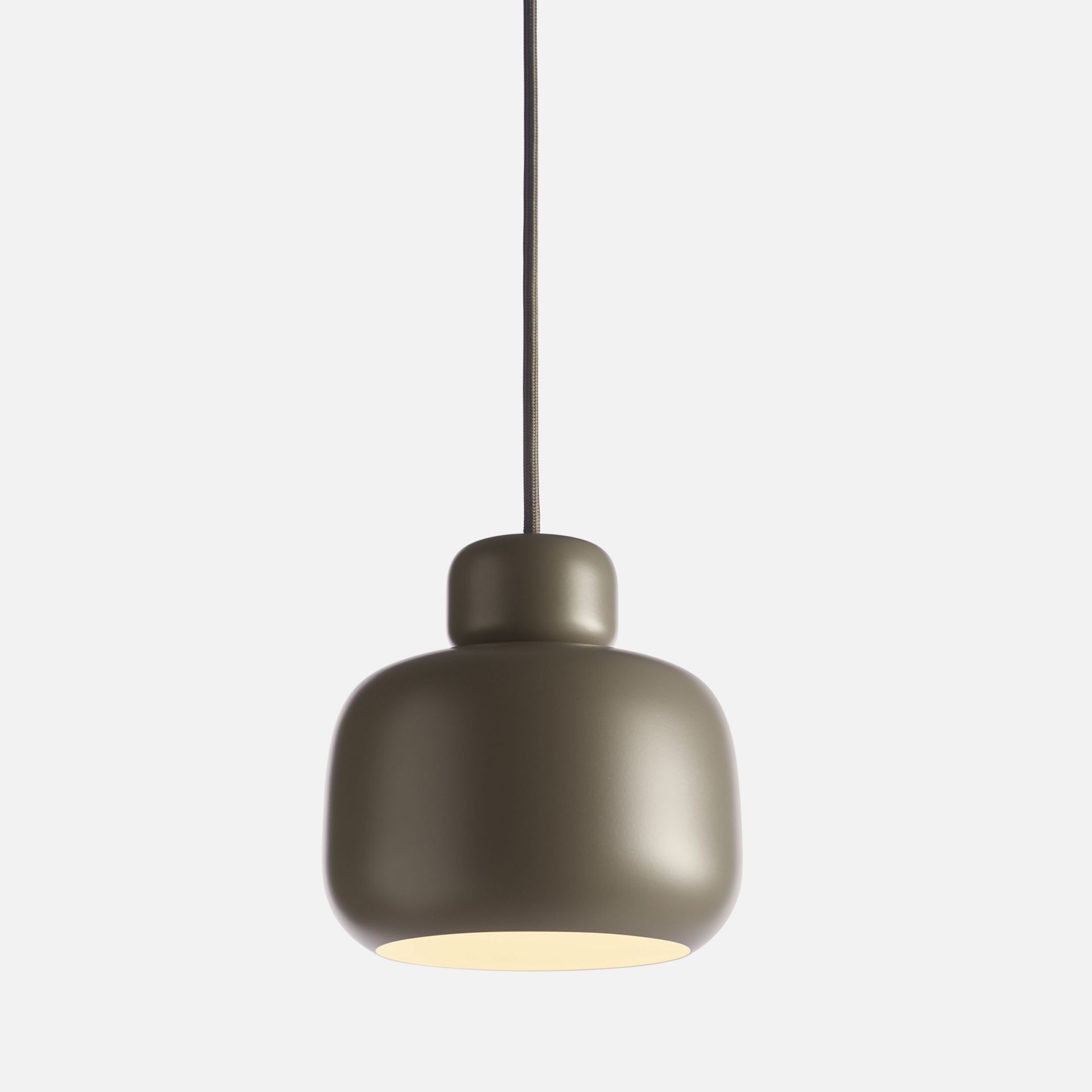 Ihren Namen hat die Pendelleuchte Stone von durch die Kraft des Wassers abgeschliffenen Kieselsteinen erhalten. Genau an deren weich gespülte Oberfläche erinnert die rundliche Form und das matte Finish der Designer Leuchte von Woud.