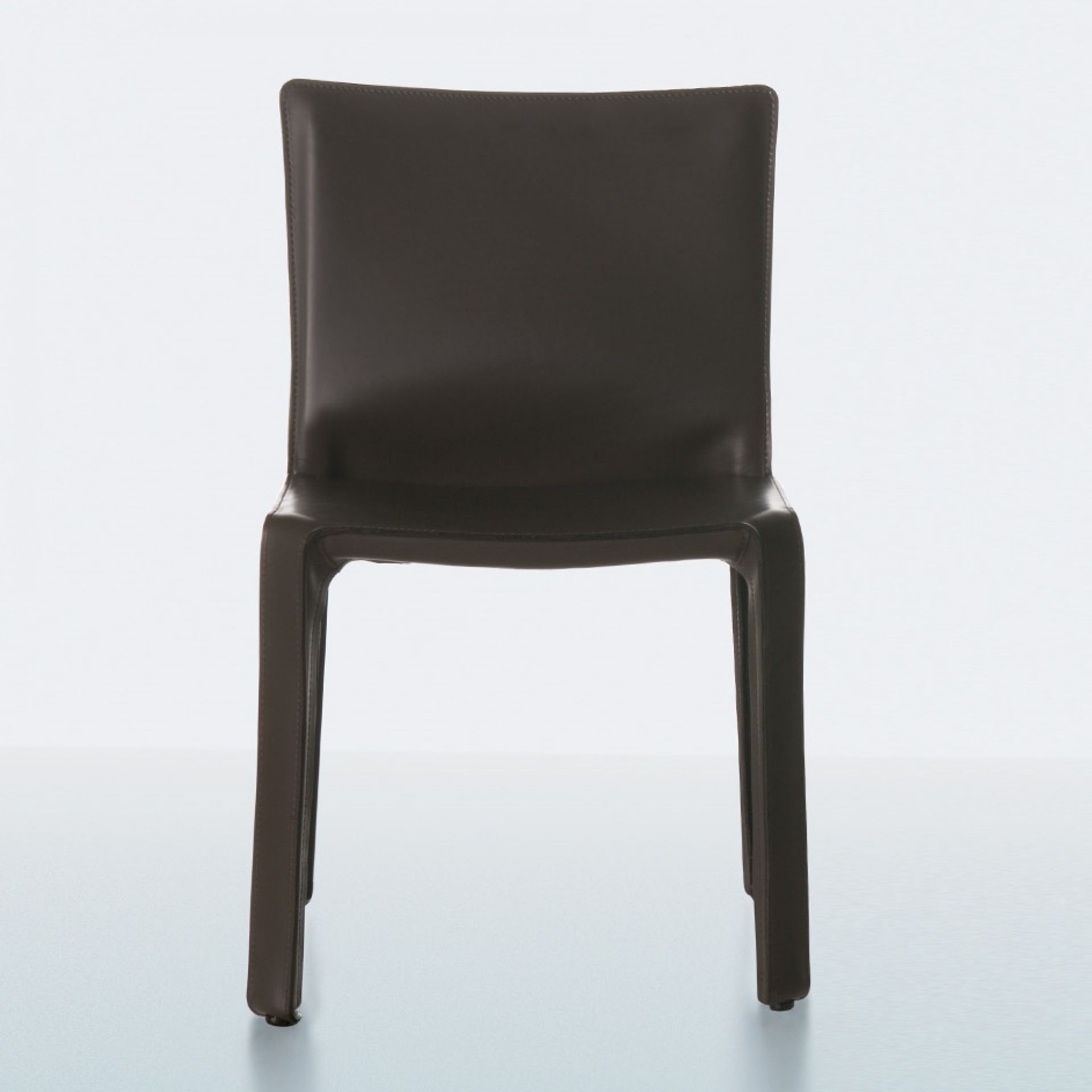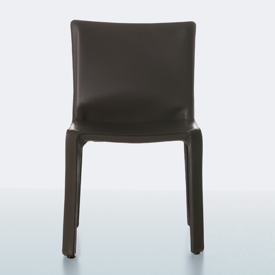 Bei uns im Online-Shop können Sie den 412 Cab Stuhl von Cassina wahlweise mit gepresstem Lederbezug oder bezogen mit feinstem Kernleder in sechs edlen Farbvarianten bestellen.