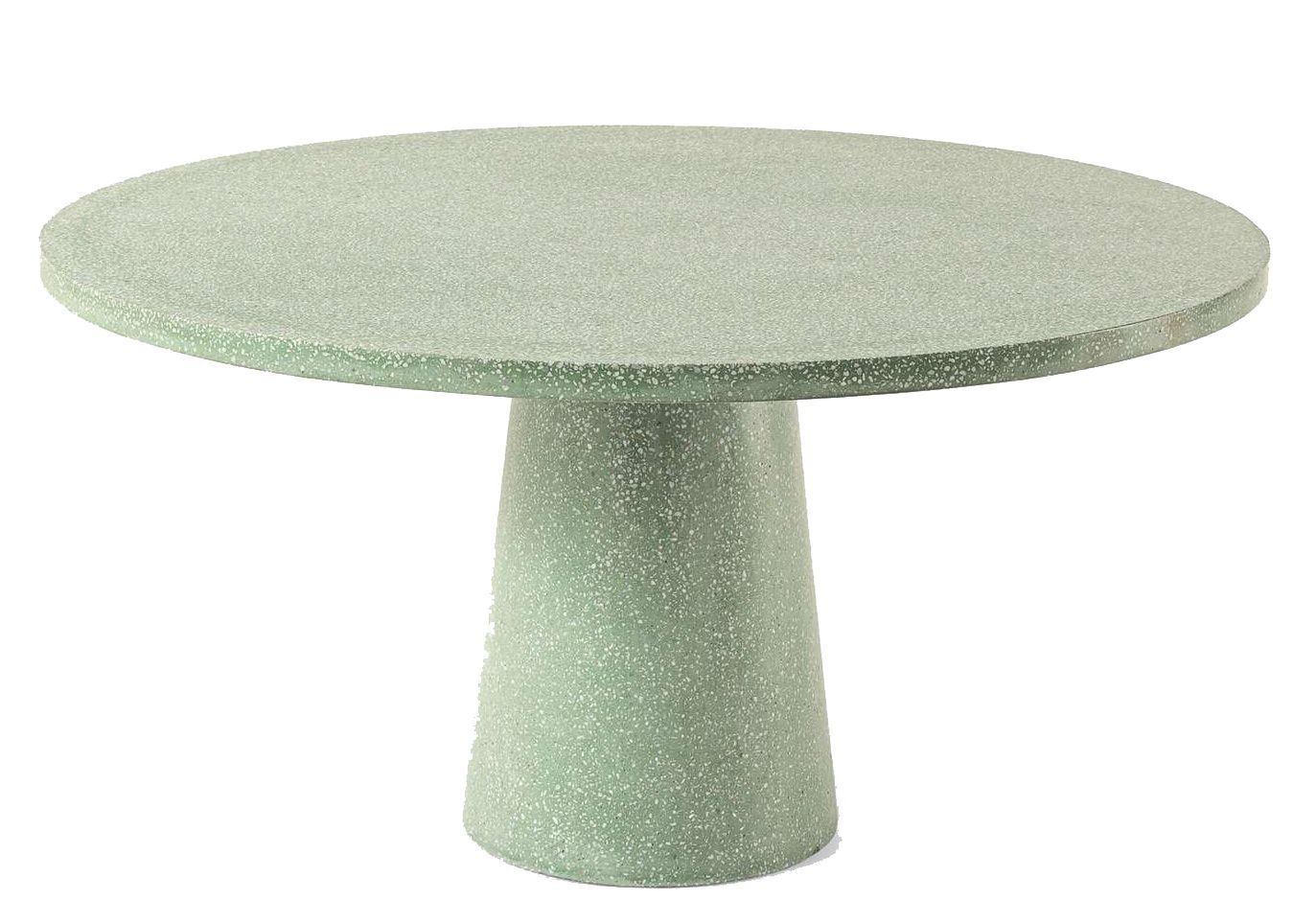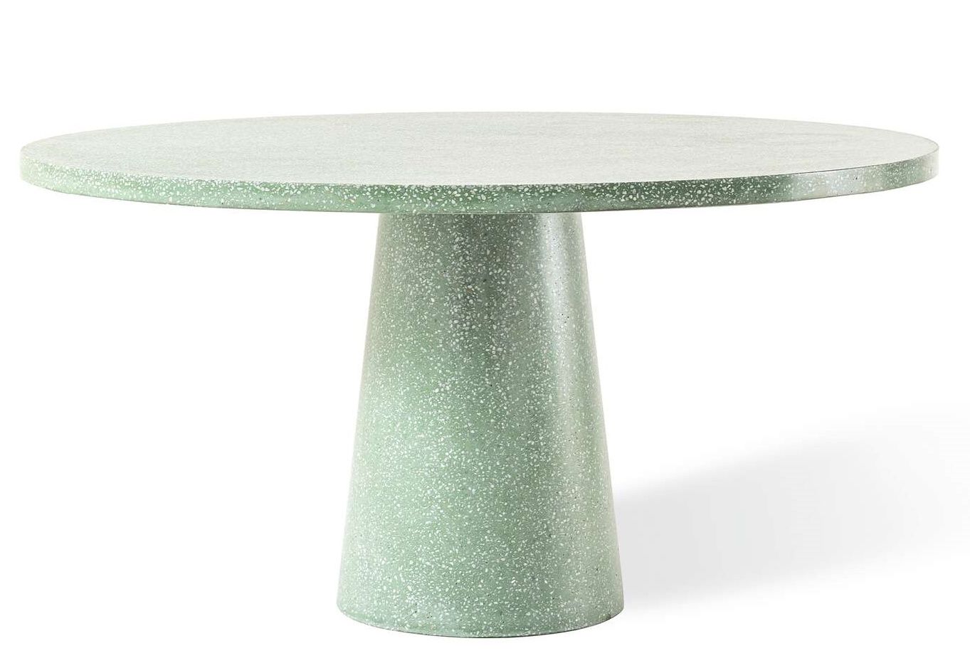 Die Möbelfamilie Dine Out wurde von Rodolfo Dordoni entworfen, um Speisebereiche im Freien stilvoll aufzuwerten. Die Basis des runden Tisches aus Terrazzo ist ein konisches, massives Objekt, das die Platte trägt. Atemberaubend, einzigartig und skulptural wirkt der Designtisch.