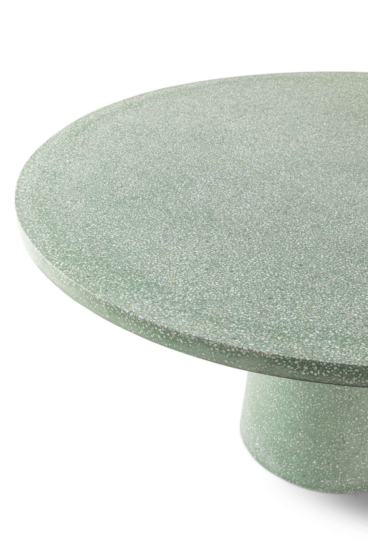 Der Dine Out Tisch aus Terrazzo misst 73 cm in der Höhe und hat einen Durchmesser von 140 cm.