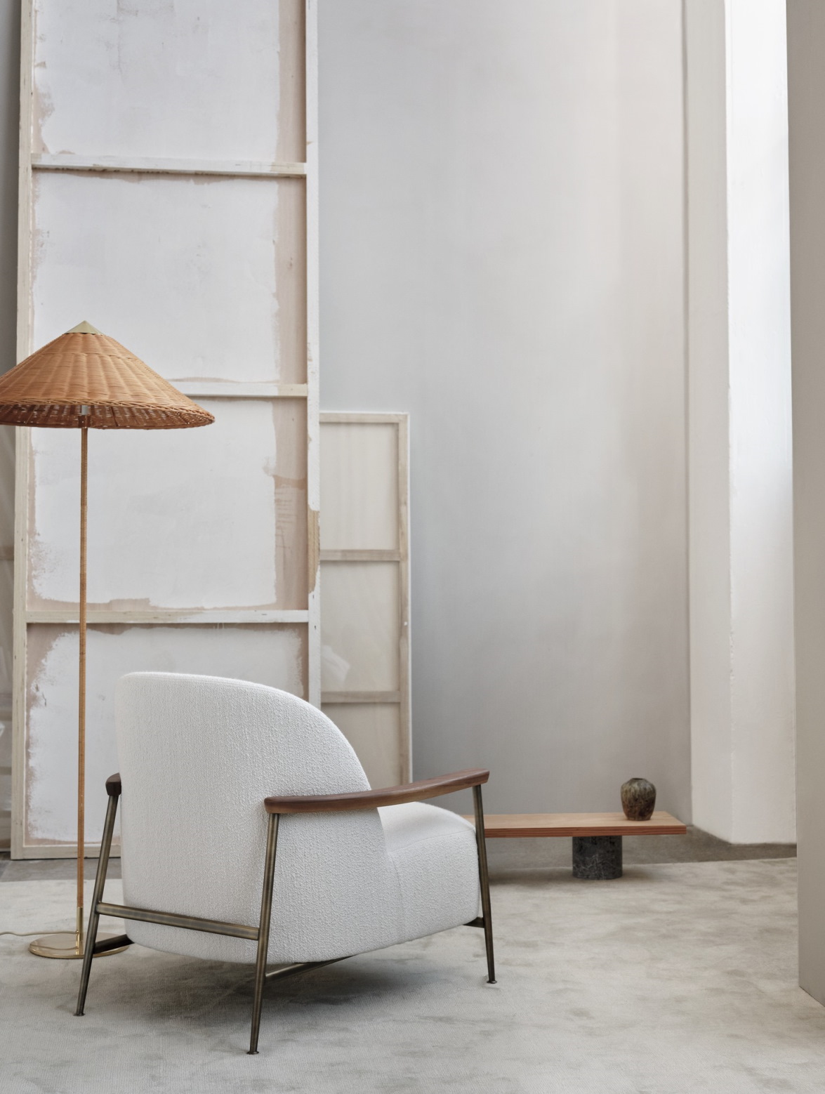 Bereits im Jahr 1938 wurde die 9602 Stehleuchte von Paavo Tynell für das Hotel Aulanko entworfen. Die Stehleuchte, auch bekannt als „Chinese Hat“, zeichnet sich durch den eleganten Lampenschirm und den mit Rattan bespannten Stiel aus, welcher eine gemütliche Atmosphäre kreiert. Durch die verwendeten Materialien und die Formgebung wird ein sanftes Umgebungslicht geschaffen.