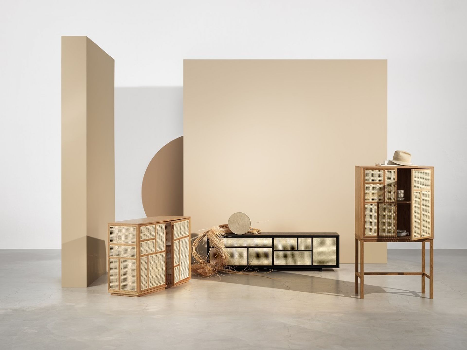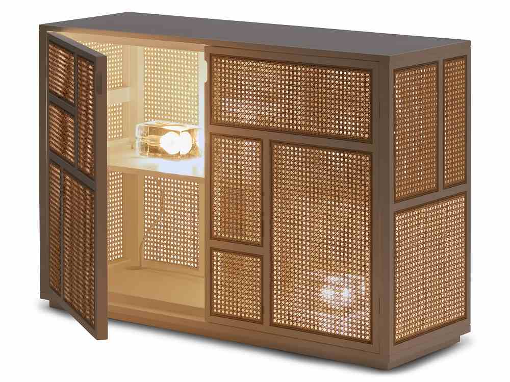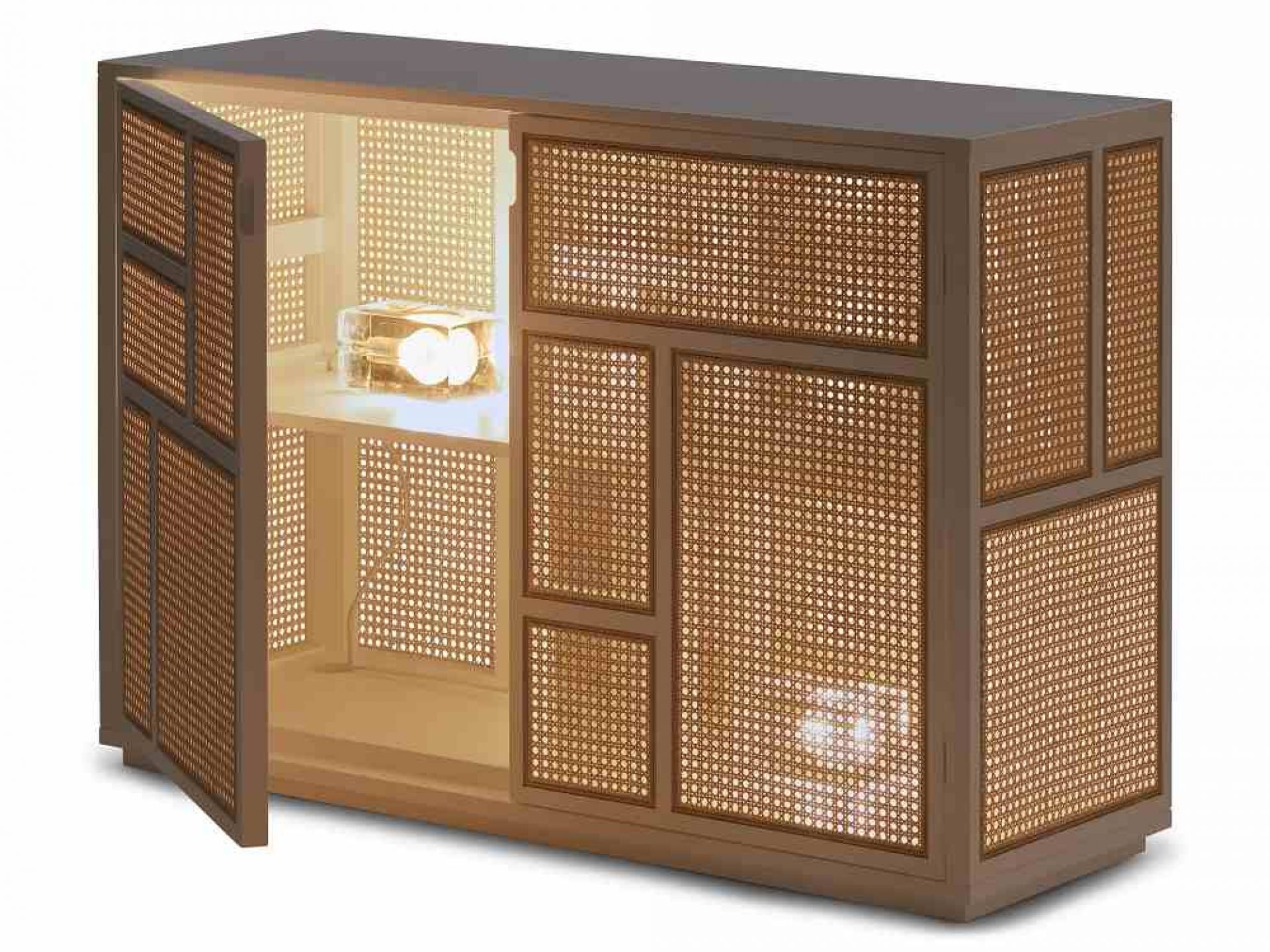 Die Verwendung von Schilfrohr- und Rattangeflecht ist bei Sitzmöbeln nichts Ungewöhnliches, bei Schränken und Sideboards hingegen schon. Doch auch in diesem neuen Kontext kann die altertümliche Handwerkskunst überzeugen, wie das Designer-Sideboard Air beweist.