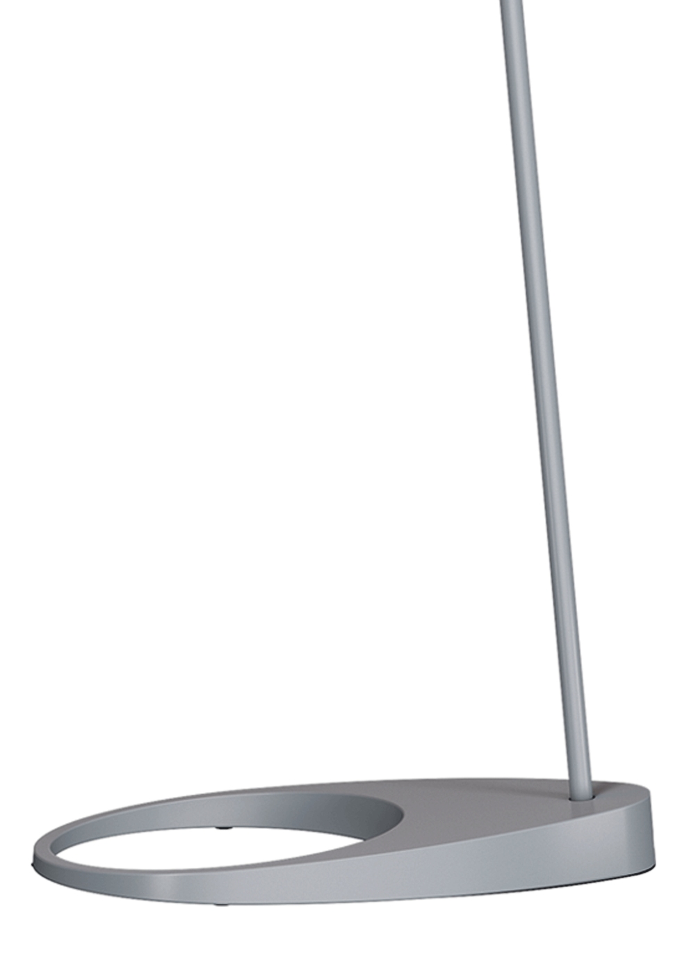 Während der Lampenschirm und das Gestänge aus pulverbeschichtetem Stahl bestehen, wurde beim Leuchtenfuß auf stabilen Zinkdruckguss zurückgegriffen. So hat die Designer Leuchte AJ einen sicheren Stand. Die kreisrunde Aussparung im Leuchtenfuß trägt zum luftigen Design bei – Legenden zufolge soll Arne Jacobsen hier einen Einsatz für einen Aschenbecher geplant haben.