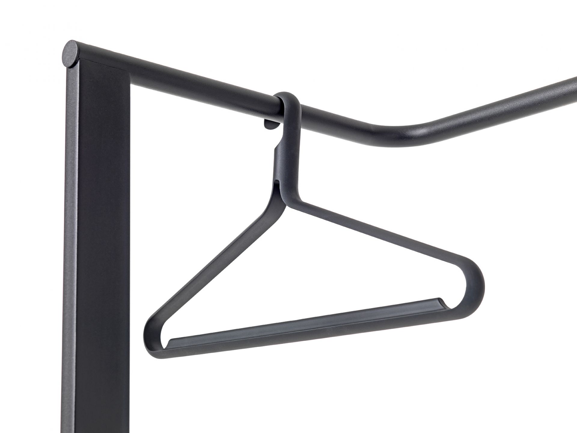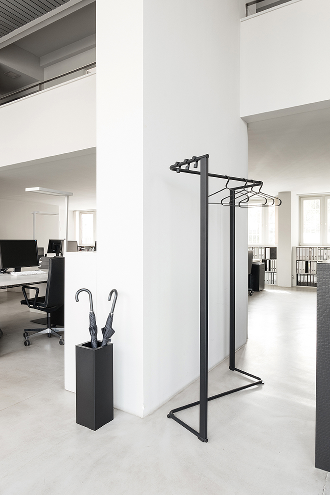 Hängt gerne herum: Angle Kleiderbügel von Schönbuch. Kleiderbügel führen in der Regel ein Schattendasein, man braucht sie, aber ein optischer Hochgenuss sind diese nicht. Dass das auch besser geht, dafür sind die Angle Kleiderbügel von Schönbuch der beste Beweis. Die mattschwarze Farbe wirkt stylish, die Form sowieso.