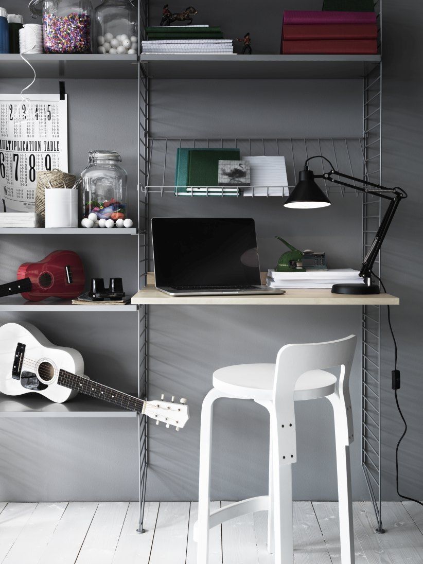 Platzwunder: String Workspace W1 Regal mit Arbeitsplatte von String Furniture