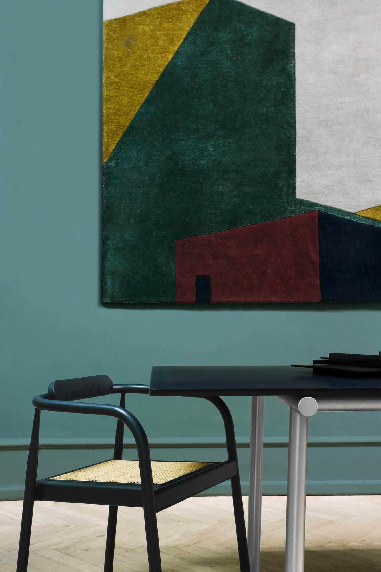 Als Material kommt hochwertige Wolle in Kombination mit strapazierfähiger Viskose zum Einsatz, wodurch ein schwerer und robuster Stoff entsteht. Please Wait to be Seated lässt seine Designer Teppiche von erfahrenen Handwerksmeistern in Indien von Hand anfertigen.