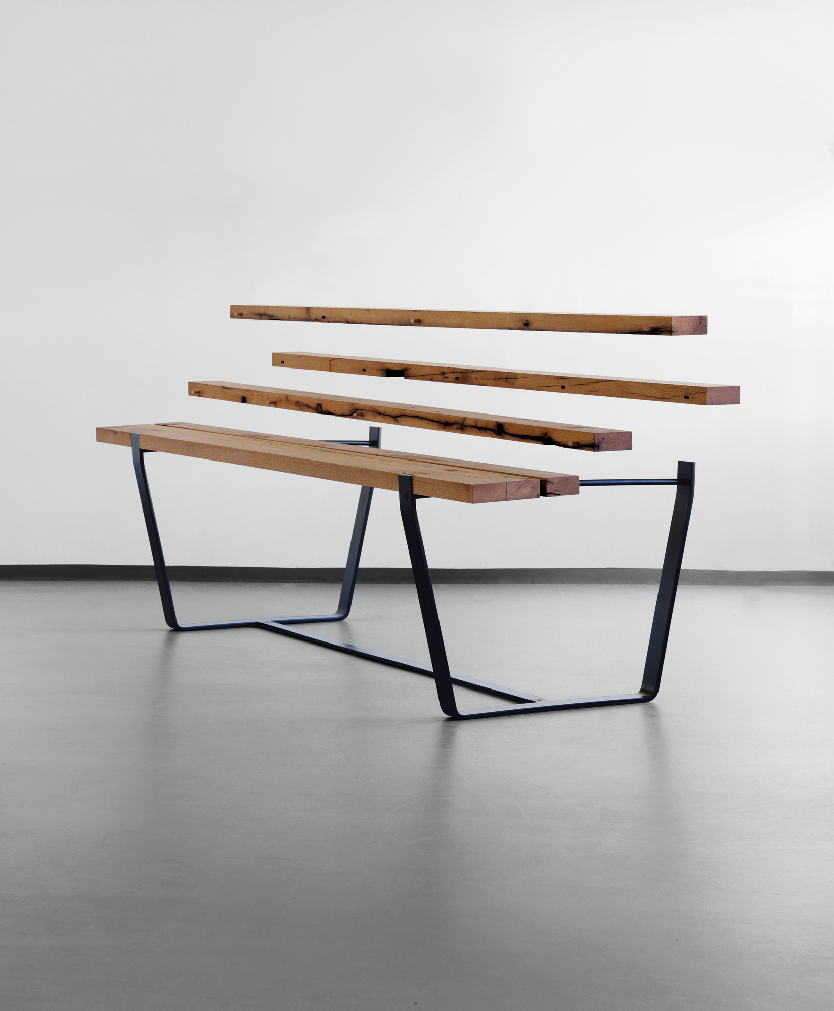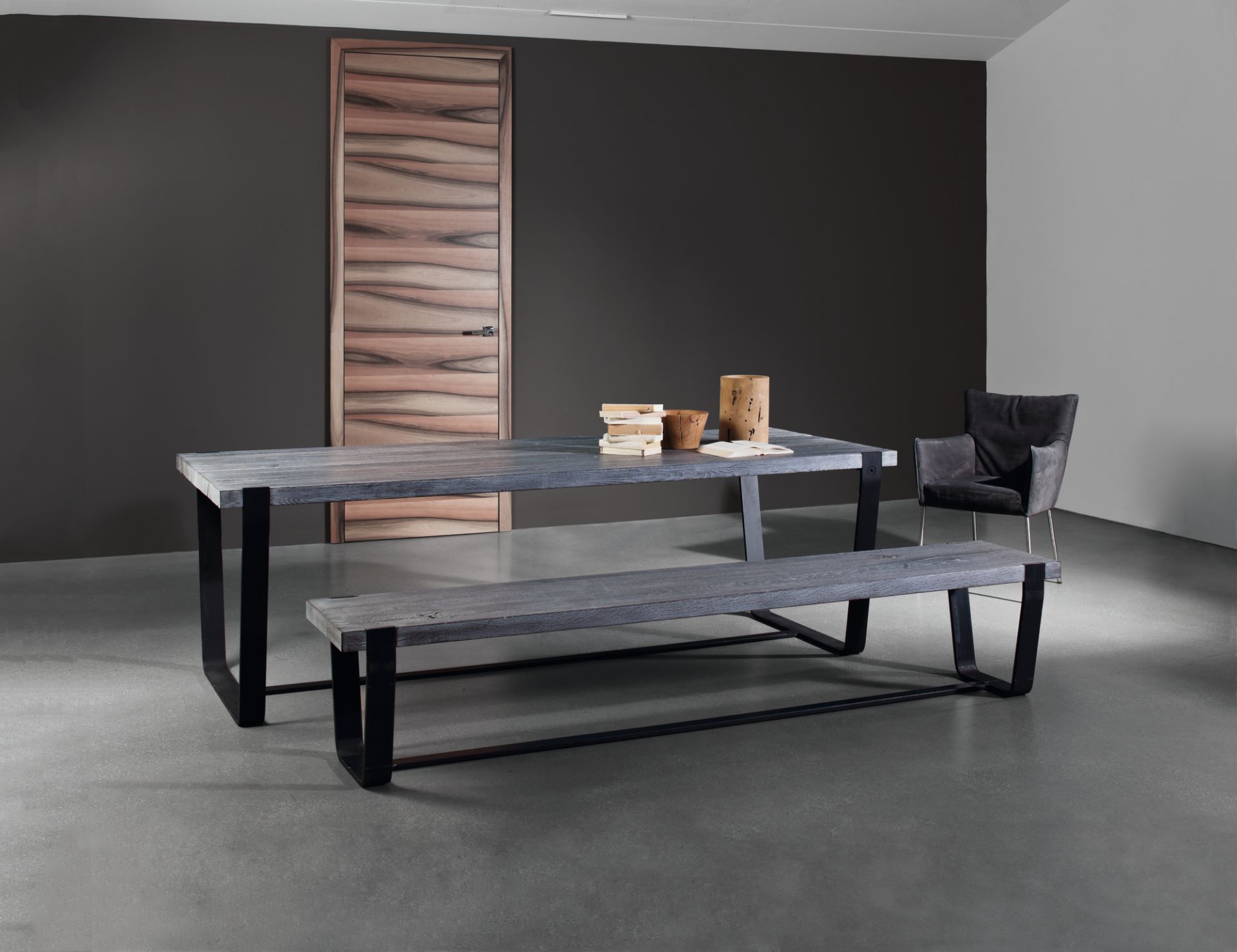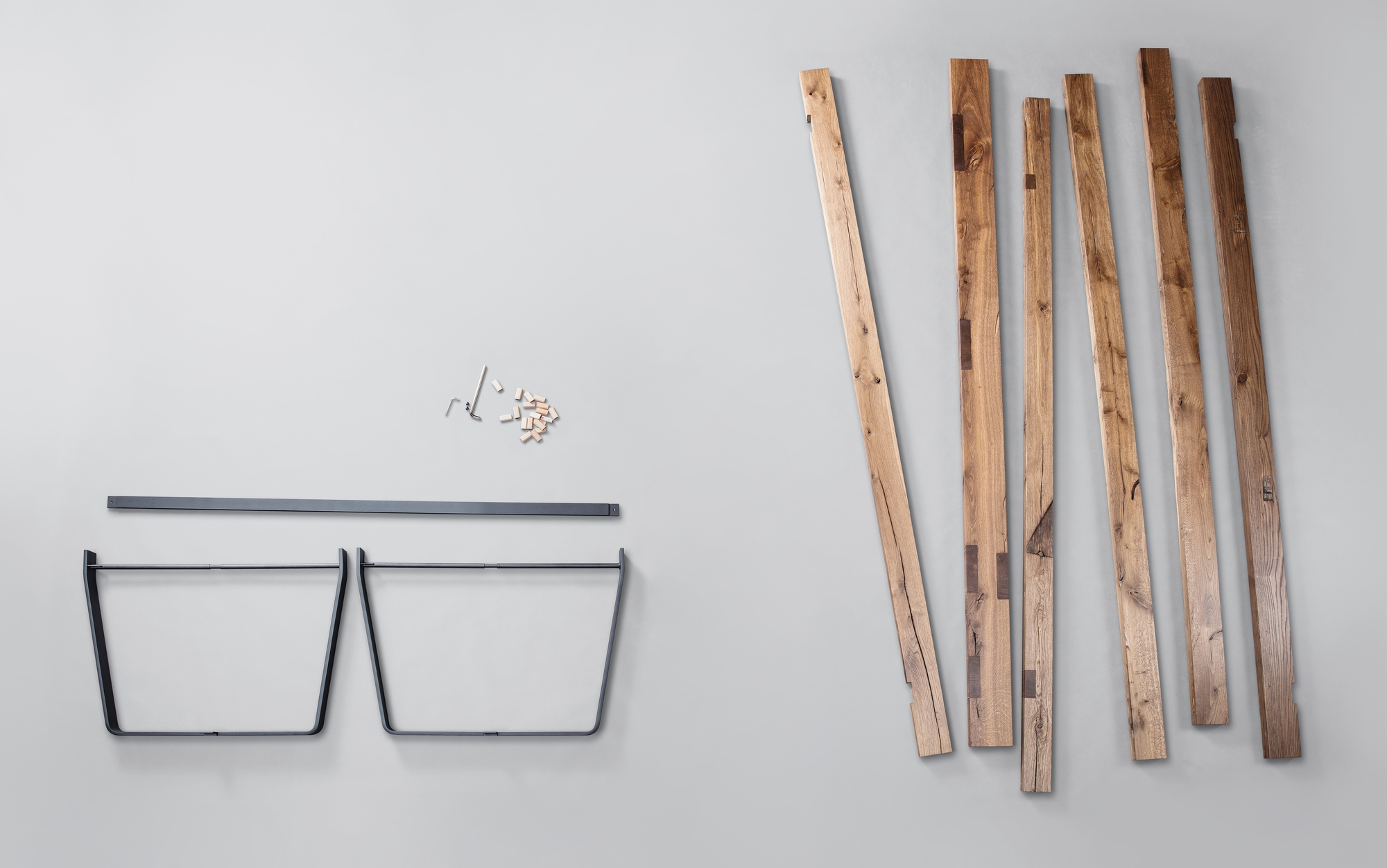 Arbeitsintensiv: BB 11 Clamp Tisch von Janua. Was man alles Tolles aus Holz machen kann, dafür ist der Clamp Tisch der beste Beweis. Das Eichenholz bekommt eine Sonderbehandlung und wird zuerst geköhlt, um im Anschluss daran gekalkt beziehungsweise gelaugt/gekalkt zu werden. Die Prozedur lohnt sich aber allemal: Der Tisch ist einfach ein Traum.