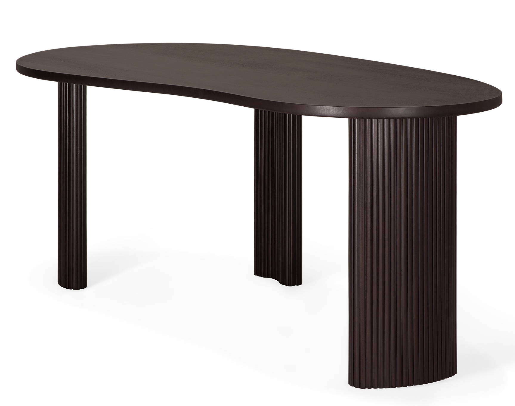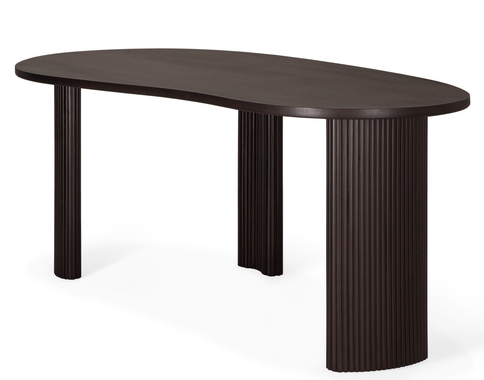 Die Serie Boomerang ist sehr naturnah designt. Die Tischplatte in der Form eines Kieselsteins, die Beine aus einzelnen Stäben: dieser Schreibtisch wirkt einfach beeindruckend organisch. Das dunkle Mahagoniholz hat eine außergewöhnlich elegante und edle Optik. Diese Mischung fasziniert schon auf den ersten Blick!