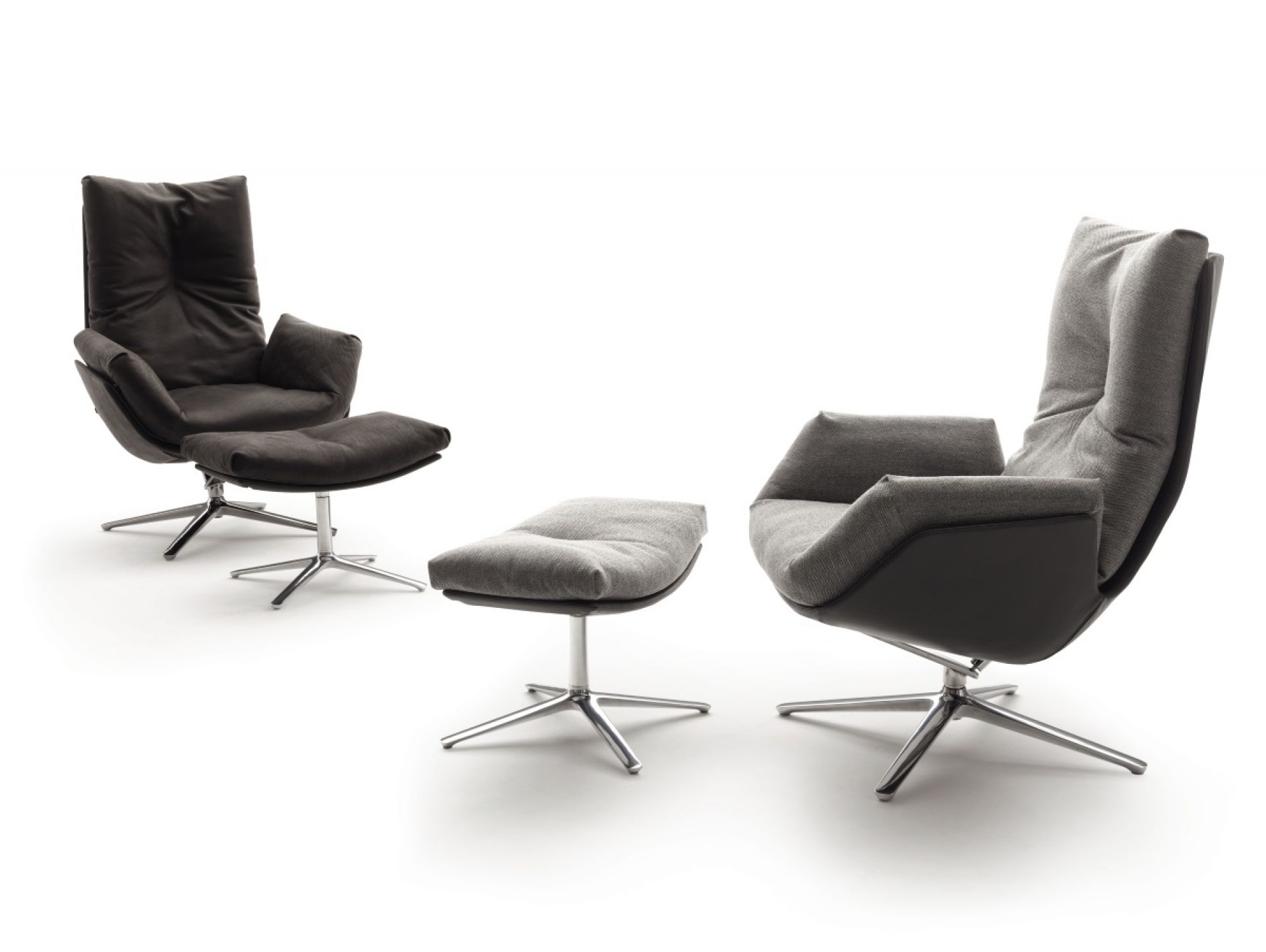 Wie sein großer Bruder – der Cordia Lounge Relaxsessel – besteht auch der Cordia Lounge Hocker aus einer eleganten Schale, einem kuscheligen Kissen und einem edlen Fußkreuz. Auch hier können Sie zwischen verschiedenen Dessins wählen, wir empfehlen jedoch, den Bezug auf den Sesselbezug abzustimmen. So wirkt alles wie aus einem Guss.
