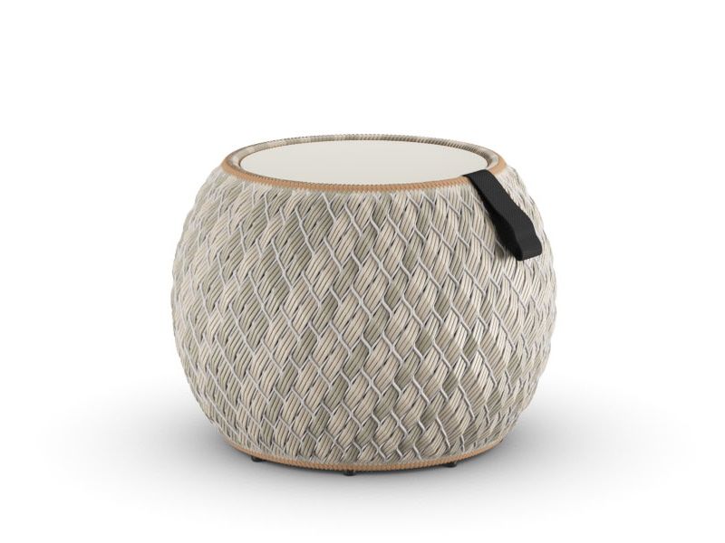 Der Dala Beistelltisch basiert auf einem Aluminiumrahmen mit elektrostatischer Pulverbeschichtung. Die geflochtene Ummantelung – erhältlich in fünf Farbausführungen – wird aus Polyethylen-Fasern mit hoher Dichte (HDPE) gefertigt. Als Ablage dient eine gefärbte Glasplatte, die farblich auf die von Ihnen gewählte Farbausführung abgestimmt ist.