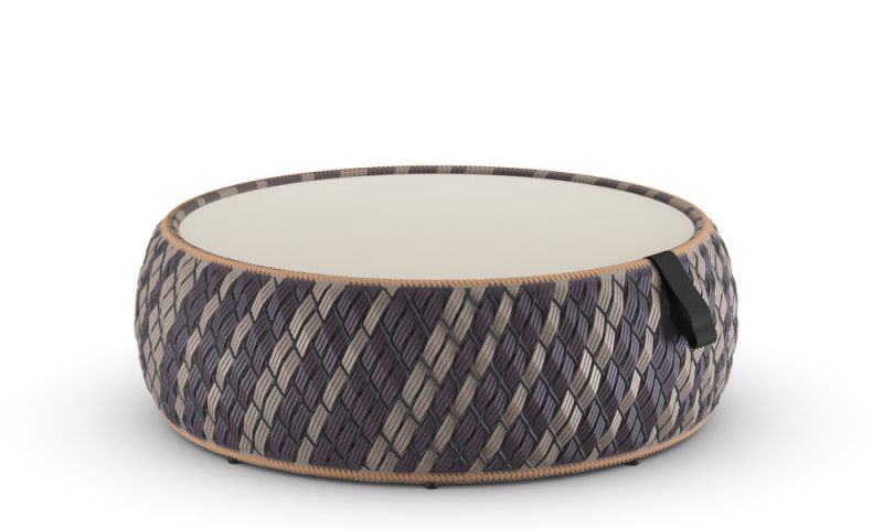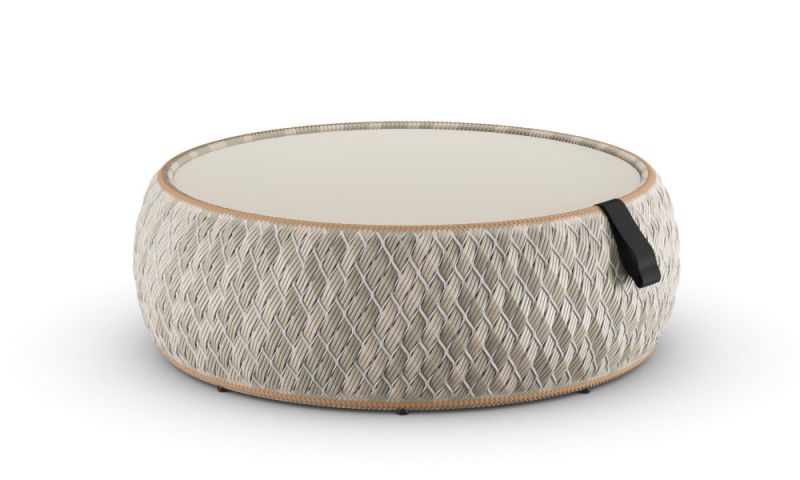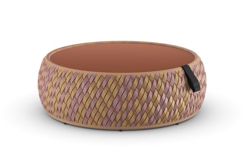 Der Dala Beistelltisch basiert auf einem Aluminiumrahmen mit elektrostatischer Pulverbeschichtung. Die geflochtene Ummantelung – erhältlich in fünf Farbausführungen – wird aus Polyethylen-Fasern mit hoher Dichte (HDPE) gefertigt. Als Ablage dient eine gefärbte Glasplatte, die farblich auf die von Ihnen gewählte Farbausführung abgestimmt ist.