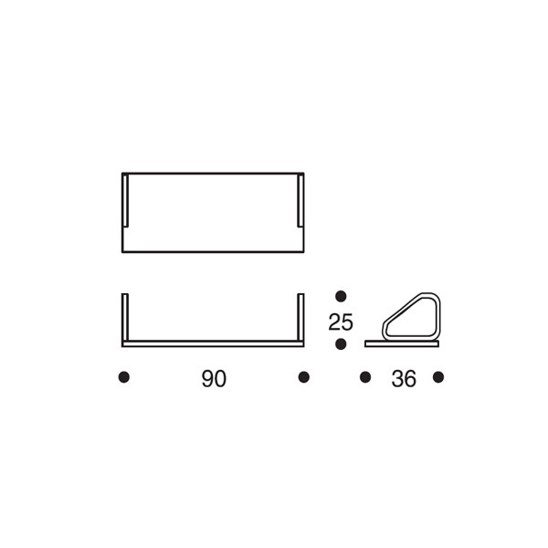 Das Regal ist 90 cm breit, 25 cm tief und 24, 5 cm hoch.