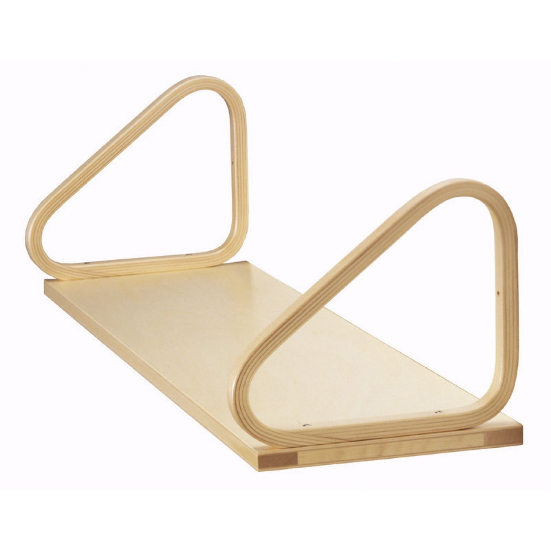 Das Design-Wandregal 112B von Artek besteht aus massivem, lackierten Birkenholz und kann in beide Richtungen an der Wand montiert werden.