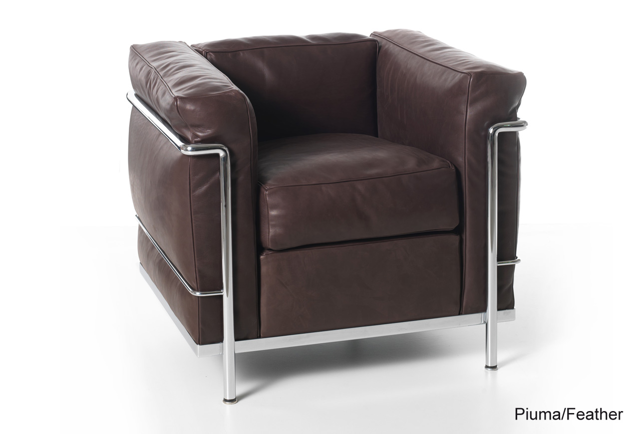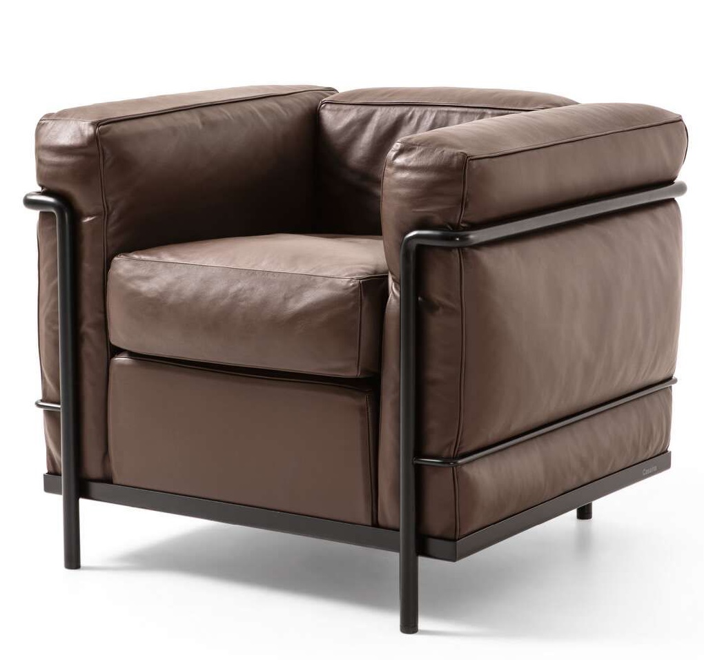 Der ehemals als LC2 bekannte Designsessel wurde 2022 durch den Hersteller Cassina umbenannt, um auch die Zusammenarbeit der anderen Designer*innen an der Klassiker-Serie zu würdigen.