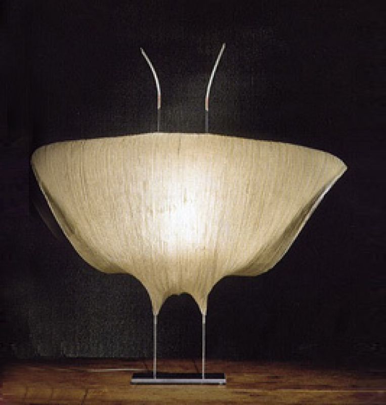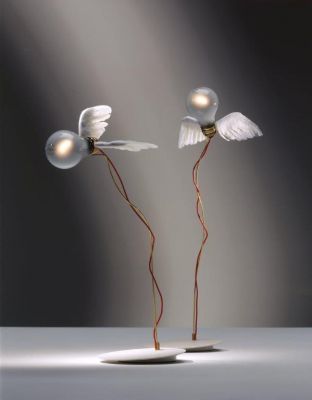 Tischleuchte 24 Karat Blau besteht aus Metall, in Kunststoff eingegossenes Blattgold. 230/125 Volt. 230 Volt: 60 Watt Halogen. 125 Volt: 60 Watt. Sockel E27.