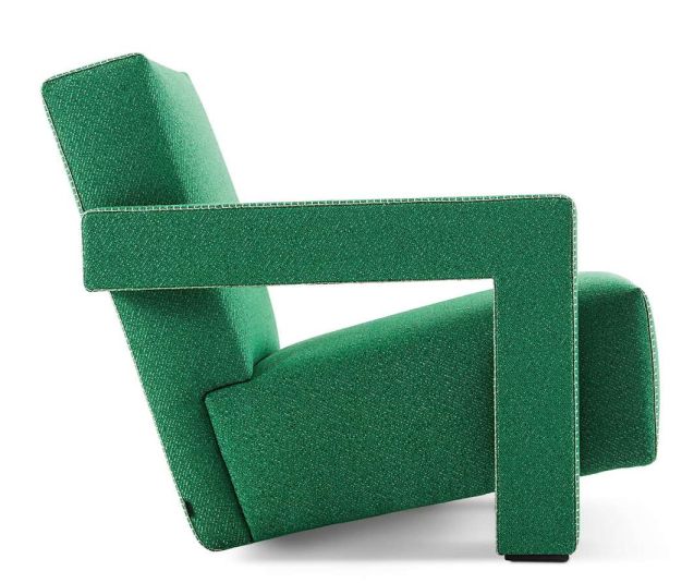 Die Utrecht Sitzmöbelkollektion, die 1935 von Gerrit T. Rietveld mit viel Experimentierfreude entworfen wurde, vereint geradlinige geometrische Formen mit futuristischem Design. Die Besonderheit, dass die Sitzmöbel komplett mit Stoff oder Leder bezogen sind, erzeugt ein stimmiges Gesamtbild.