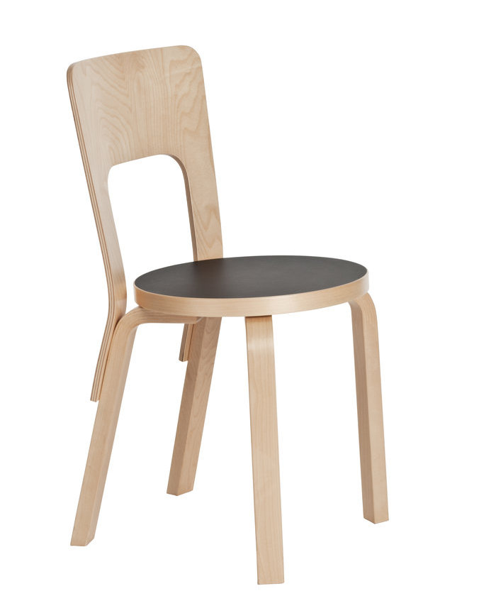 Der Design-Stuhl 66 von Artek ist aus hochwertigem Birkenholz, es gibt ihn in verschiedenen Farben und im Falle einer Polsterung mit verschiedenen Stoffbezügen: Stoff Remix (90% Wolle, 10% Polyamid), Stoff Hallingdal (70% Schurwolle, 30% Viskose), Stoff Steelcut Trio: (90% Schurwolle, 10% Polyamid), Leder Sörensen Prestige (schwarz pigmentiertes Leder), Anilinie Sörensen Elegance (walnussfarbenes Leder). Der Stuhl 66 von Artek ist 39 cm breit, 42 cm tief und 80 cm hoch. Die Sitzhöhe beträgt 45,5 cm.