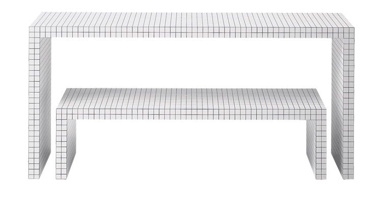 Bis heute sind die Quaderna Möbel ein besonderer Anblick einer zeitlosen und durchaus eleganten Kollektion. Das quadratische, weiße Laminat überzieht die Möbelstücke und erzeugt architektonische Landschaften.