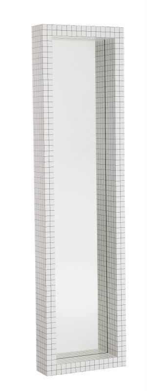 Der Schrank besteht aus Sperrholz mit weißem Print, Kristallglas. Der Schrank misst 104 cm in der Breite, 42 cm in der Tiefe und 105 cm in der Höhe.