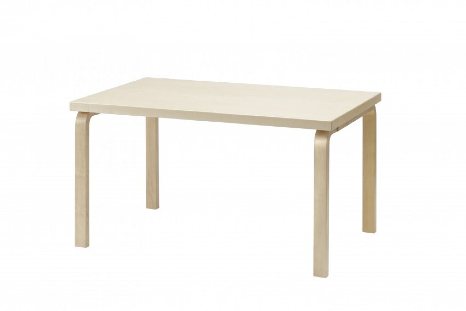 Den Design-Tisch 82B vom finnischen Label Artek gibt es in verschiedenen Größen und Oberflächen. Der Tisch ist 72 cm hoch, 135 cm breit und 75 cm tief und besteht aus Birkenholz. Die Tischplattenoberflächen sind als Birke, Linoleum oder Laminat erhältlich.