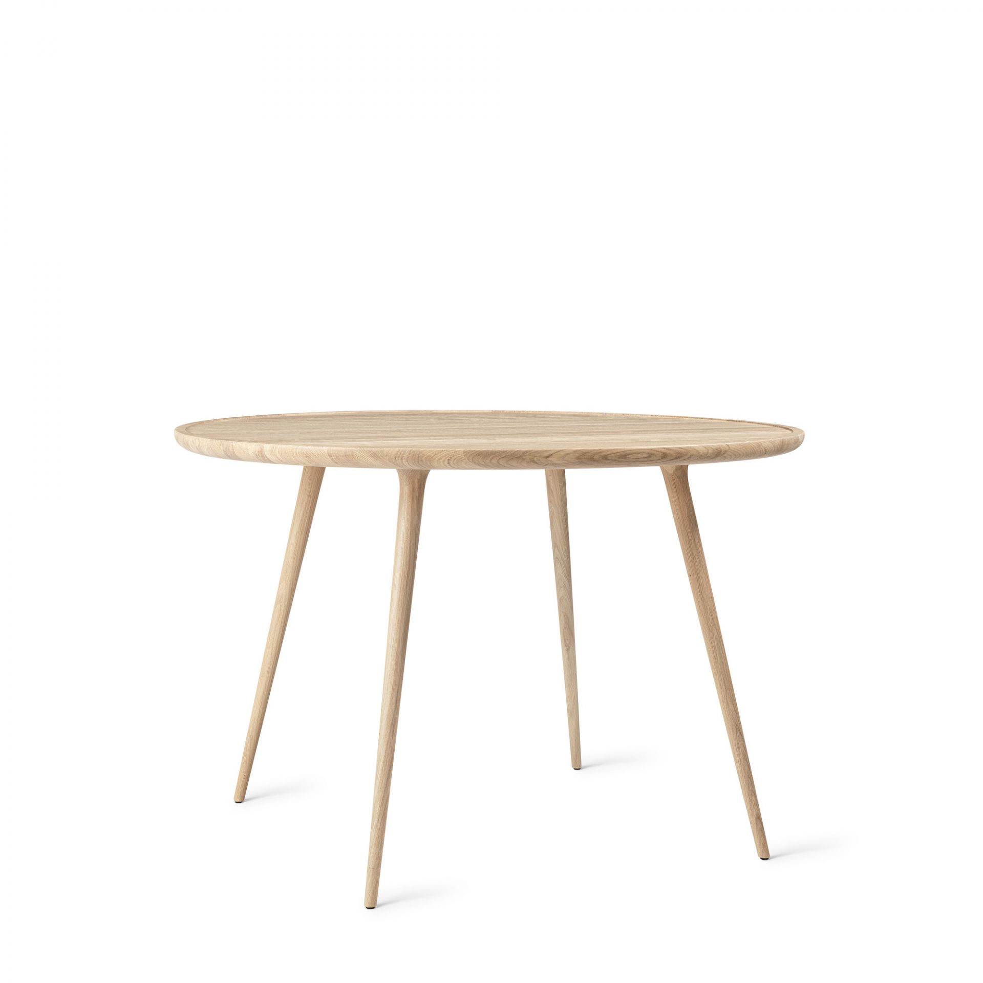 Die Accent-Tische sind aus FSC-zertifiziertem Eichenholz gefertigt und in natur oder sirka grau gebeizt erhältlich. Der Esstisch ist in zwei Größen erhältlich mit einem Durchmesser von 140 oder 110 cm und einer Höhe von 73 cm. Sie finden die größere Version auch hier in unserem Onlineshop.