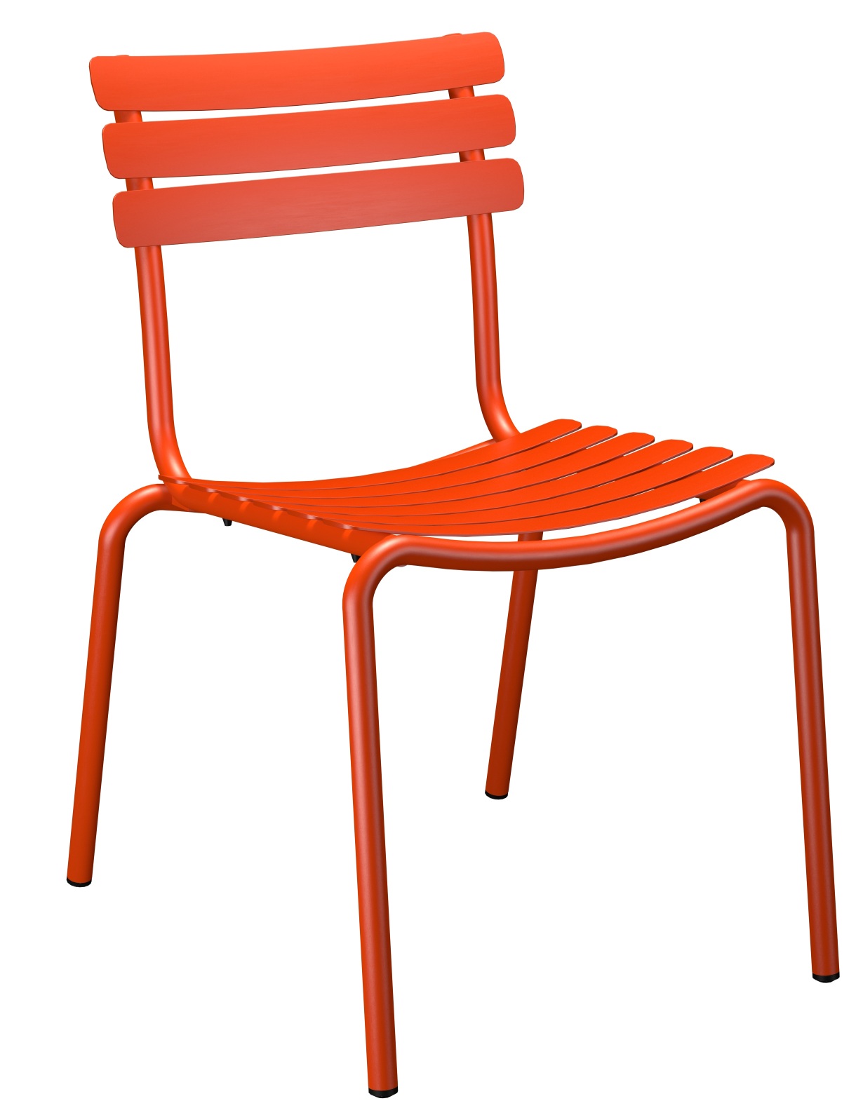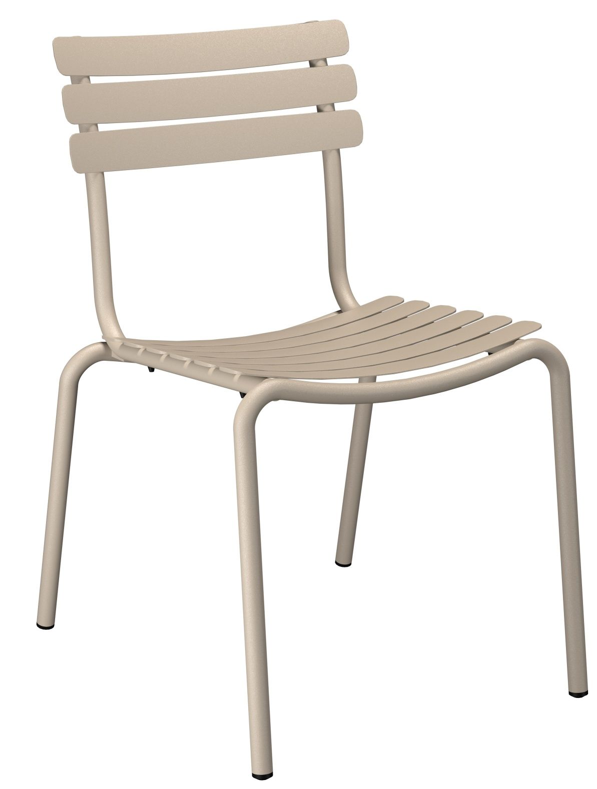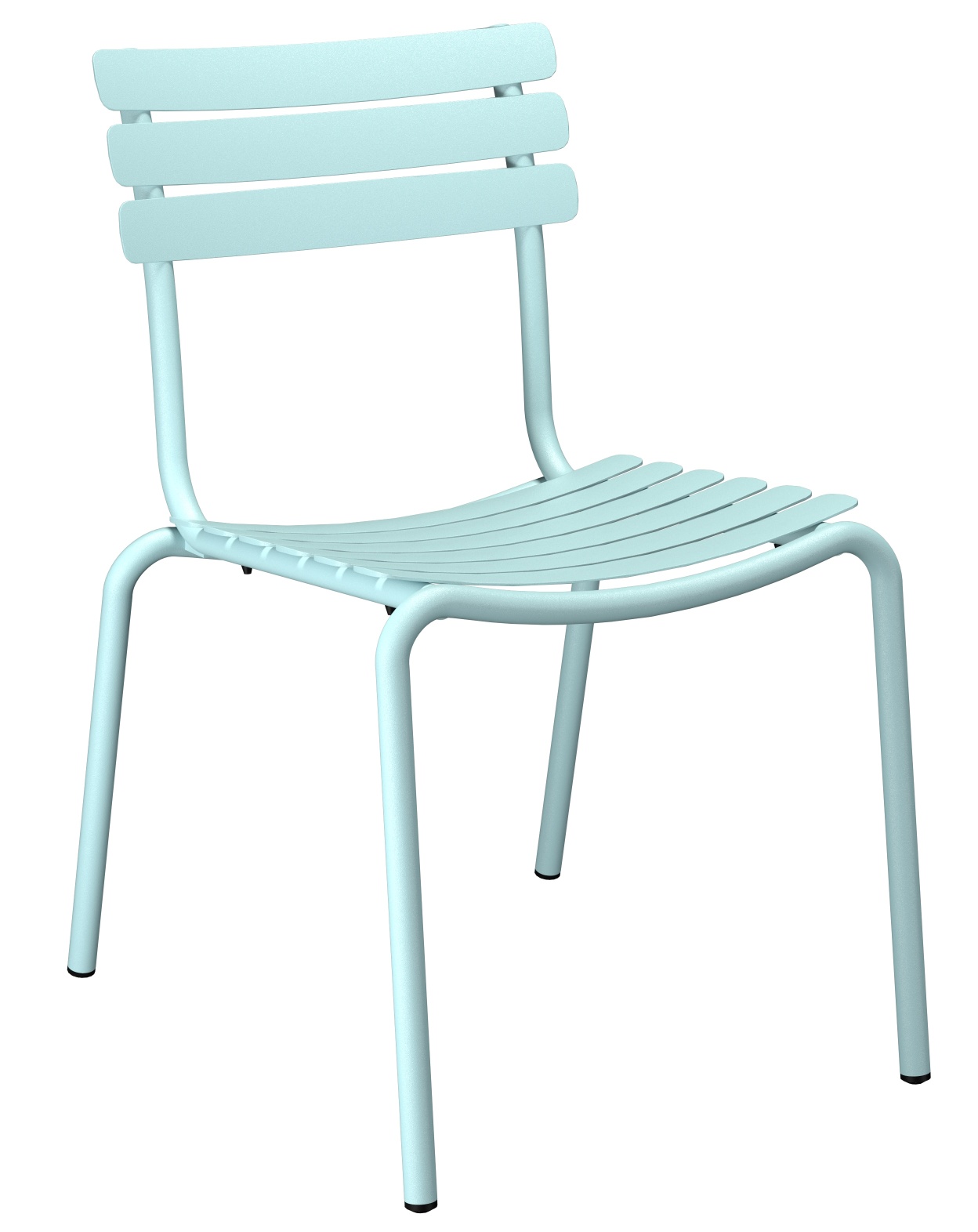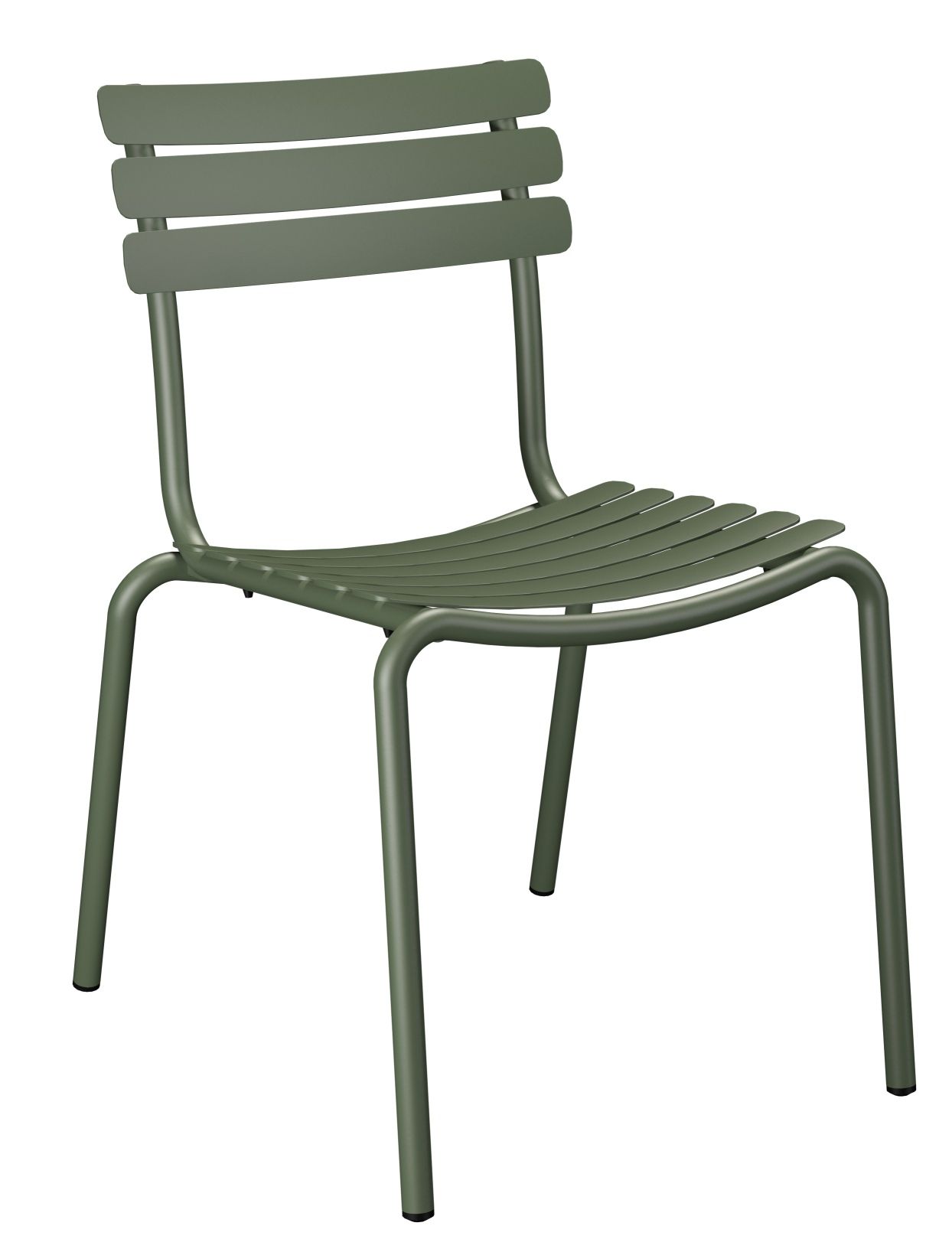 Der Alua Stuhl Outdoor ist gefertigt aus pulverbeschichtetem Aluminium mit den Maßen H 82 cm x B 54 cm x T 59 cm und einer Sitzhöhe von 46,5 cm.