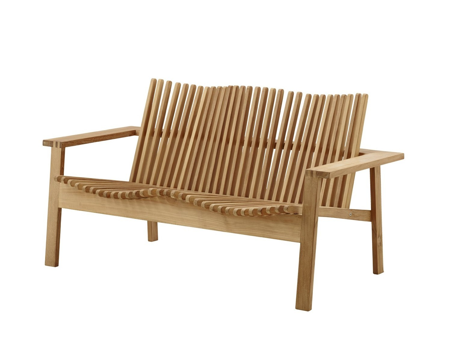 Die Bank besteht aus Teakholz. Sie ist 145 cm breit, 82 cm tief und 77 cm hoch. Die Sitzhöhe liegt bei 38 cm und die Armlehnen sind in einer Höhe von 55 cm.
