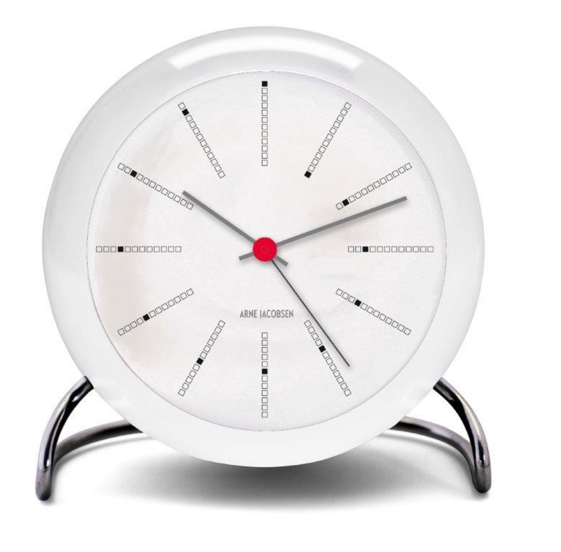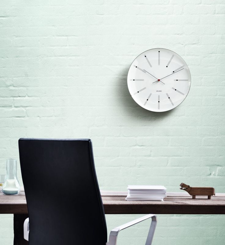 Wie auch die anderen Uhren der Tischuhren-Serie von Arne Jacobsen verfügt die Bankers Uhr über einen Lichtsensor, mit dessen Hilfe sich einerseits das LED-Licht ein- und ausschalten lässt und andererseits der Snooze-Modus aktiviert wird.
