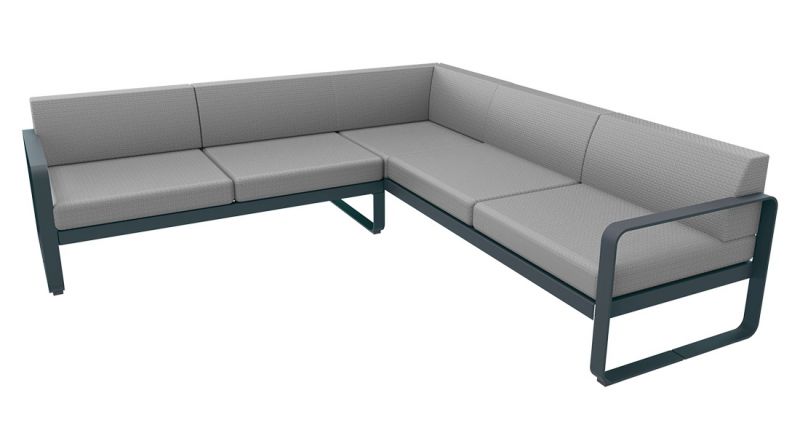 Schönes Leben – das Bellevie Sofa von Fermob zeichnet sich durch seine ebenso sanften wie markanten Linien aus und erzeugt so gleichzeitig ein Bild von Stabilität und Komfort. Aus Aluminium gefertigt ist es leicht und handlich und eignet sich hervorragend für die Anwendung im Außenbereich.