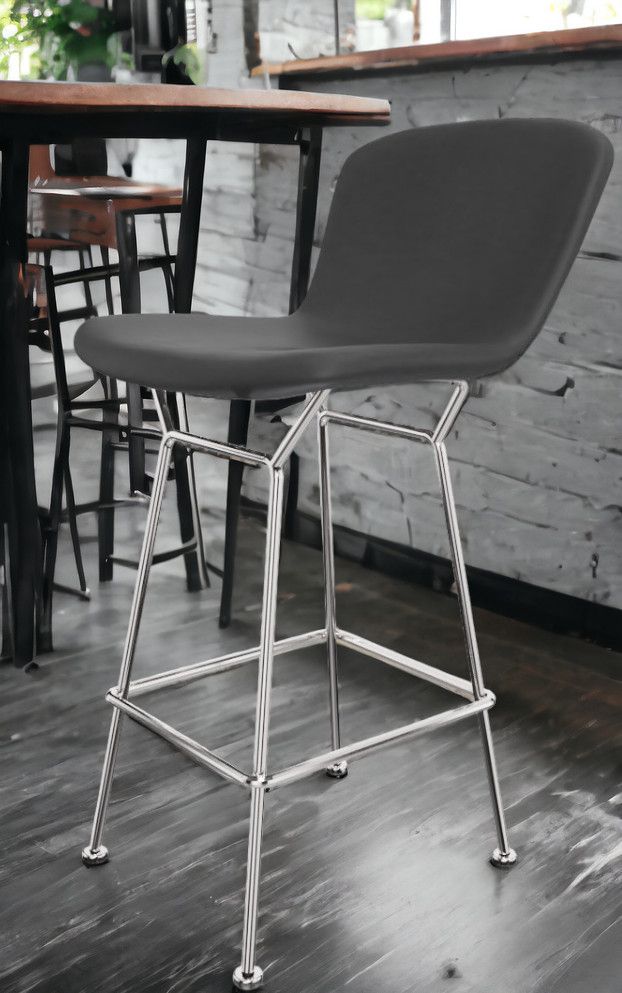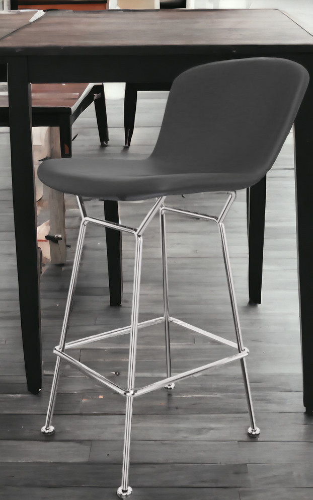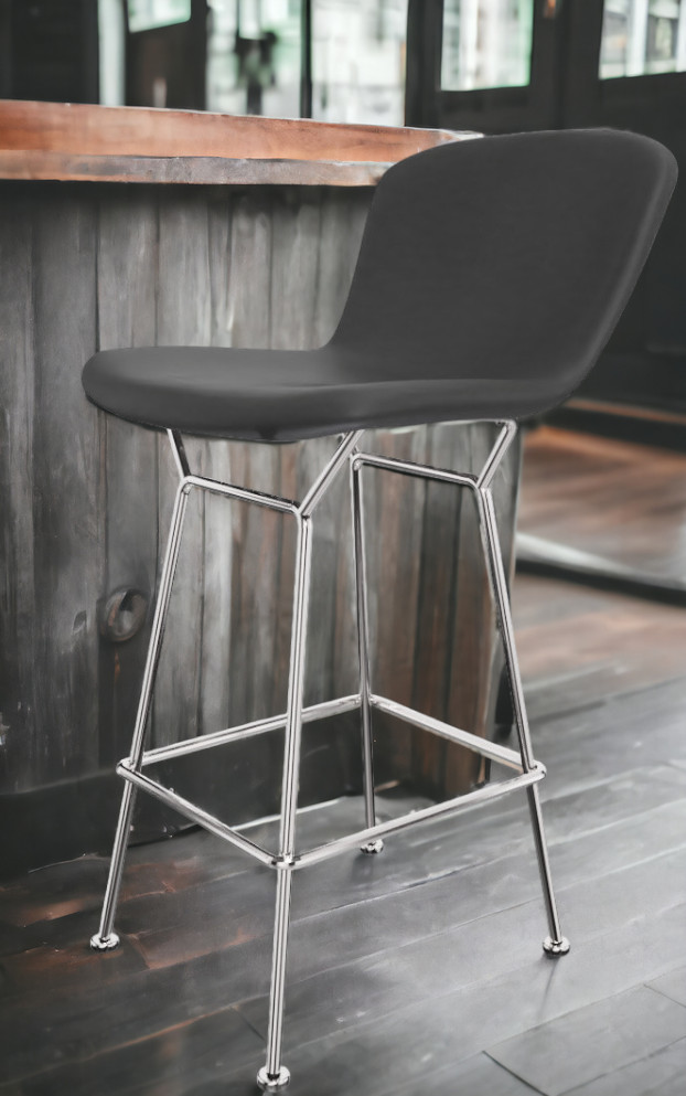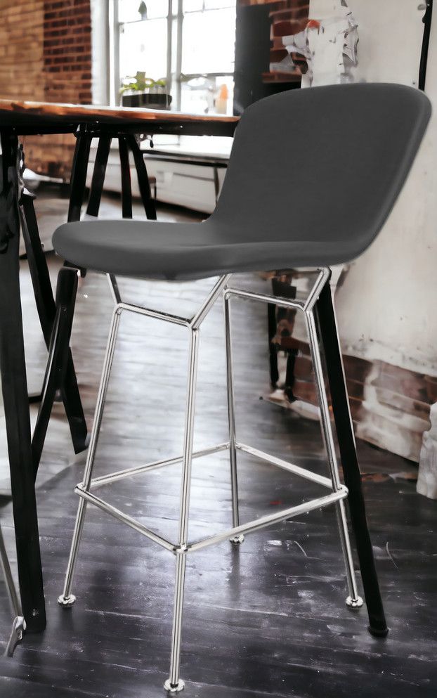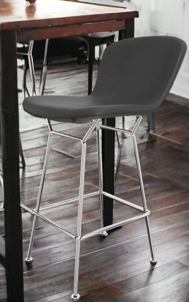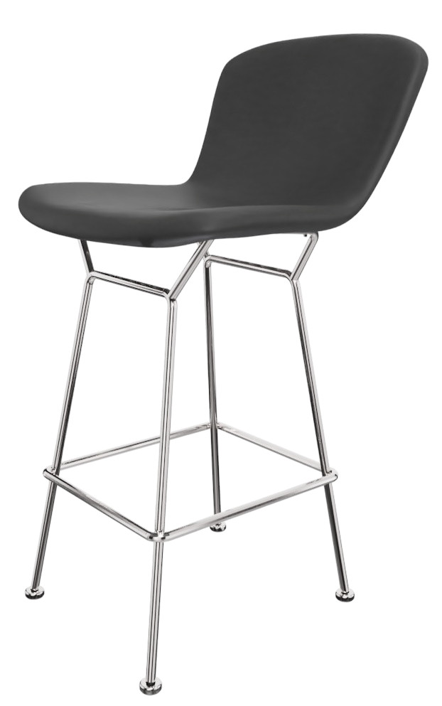 Das Gestell ist eine geschweißte Stahlkonstruktion mit Stangen in poliertem oder satiniertem Chrom. Die Sitzkissen werden mit Druckknöpfen am Stuhl befestigt. Der Hocker mit Thekenhöhe ist 100 cm hoch, 54 cm breit und 58 cm tief. Die Sitzhöhe beträgt 68 cm.