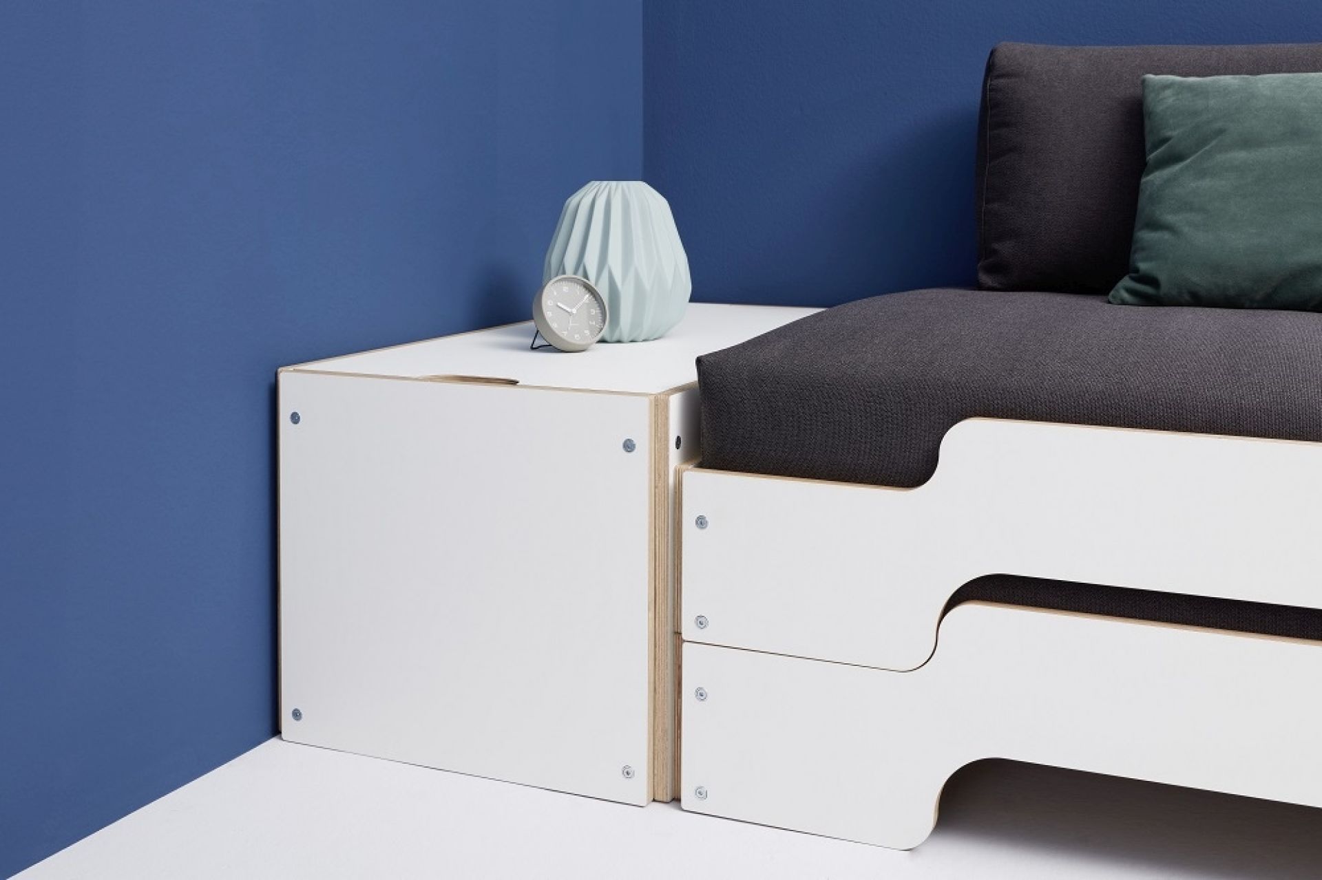 Erweitern Sie Ihre Stapelliege von Müller Möbelwerkstätten um eine nützliche Komponente: den passenden Bettkasten! Er bietet Platz für Bettzeug und kann durch den Deckel auch als Nachttischablage genutzt werden.