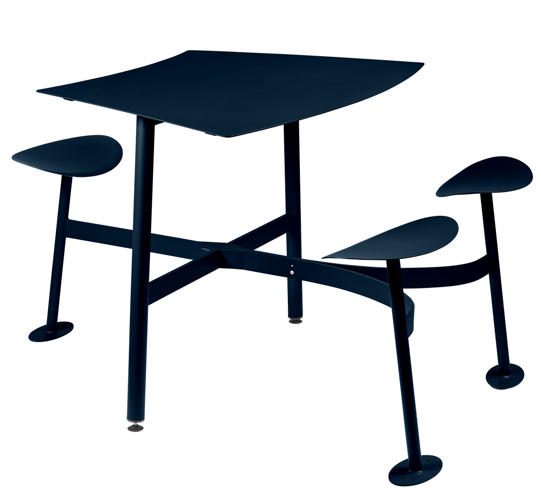 Wir bieten Ihnen hier einen Bolder 3-Sitzer-Tisch mit Sitzflächen von Fermob als Mängelexemplar an. Das Exemplar weist einige Kratzer auf, wie Sie auf den beigefügten Fotografien einsehen können. Hinweis: Der Hersteller empfiehlt die Befestigung am Boden.