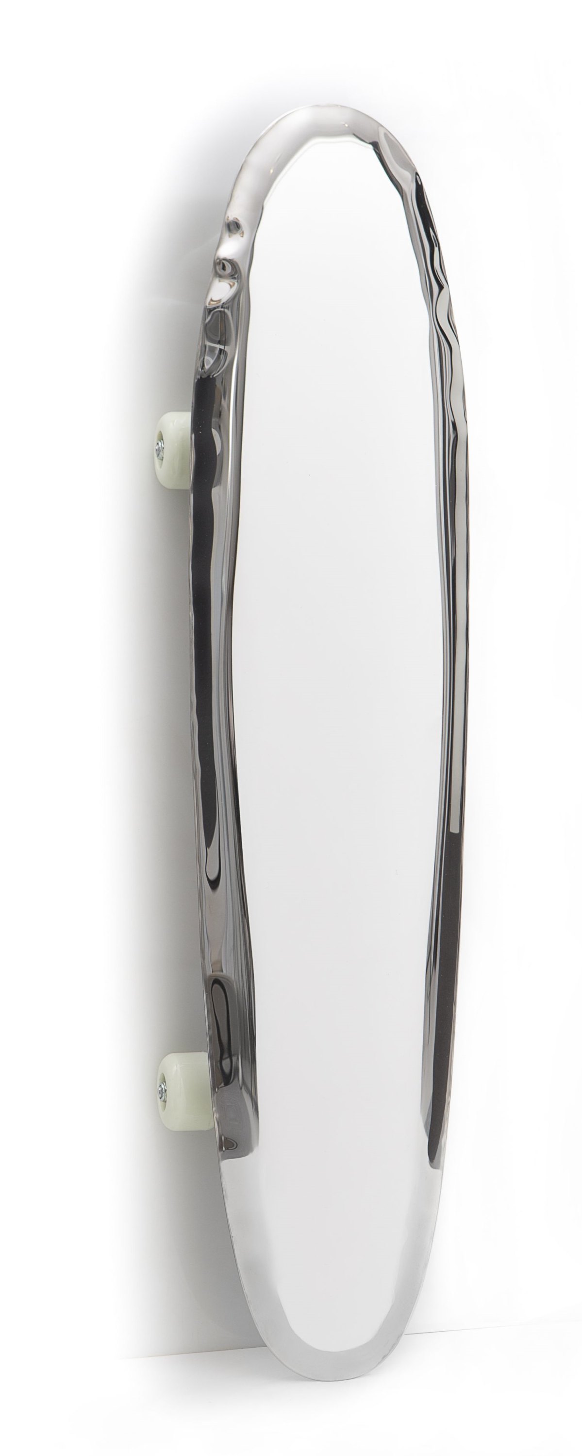 Der Bolid Spiegel ist nicht nur ein Spiegel, sondern ein wahres Kunstwerk. Diese dynamische Kreation, die die Form eines Longboards annimmt, symbolisiert die unermüdliche Bewegung und verleiht dem Konzept des Transports eine wahrhaft futuristische Dimension. Dieses bemerkenswerte Kunstwerk kann elegant an der Wand aufgehängt oder gelehnt werden und erzählt dabei eine Geschichte über die fesselnde Kraft von Lichtreflexen auf der glänzenden Oberfläche aus poliertem Stahl.