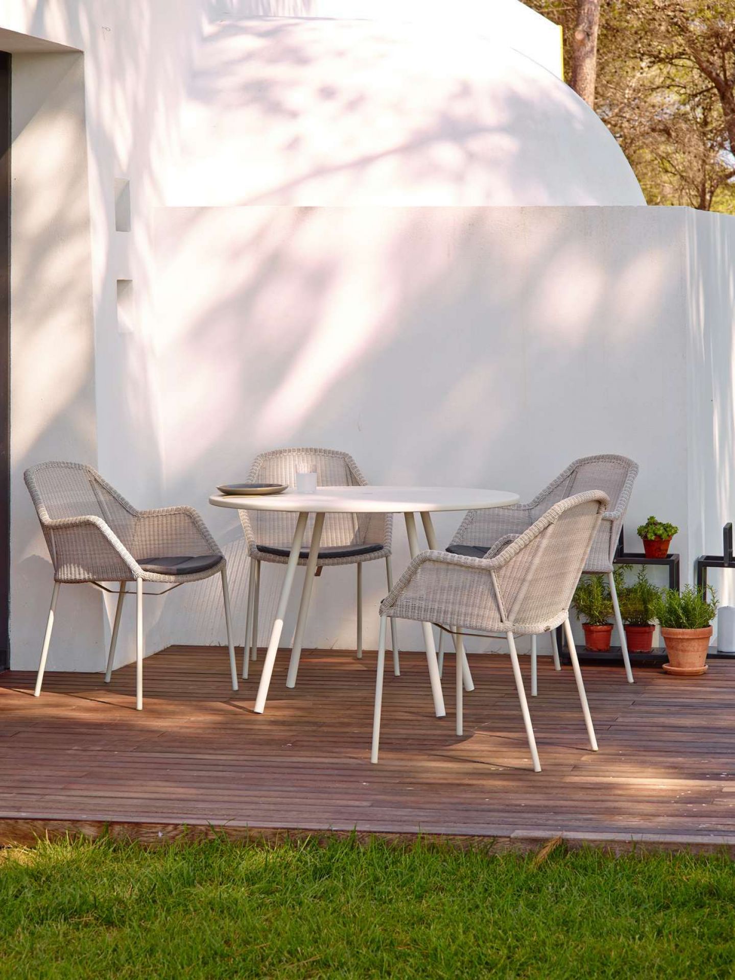 Schickes Design, praktisch und stapelbar: Mit dem Breeze Stuhl von Cane-Line schaffen Sie Sitzgelegenheiten auf Terrasse, & Balkon & Co., die zum Verweilen einladen.
