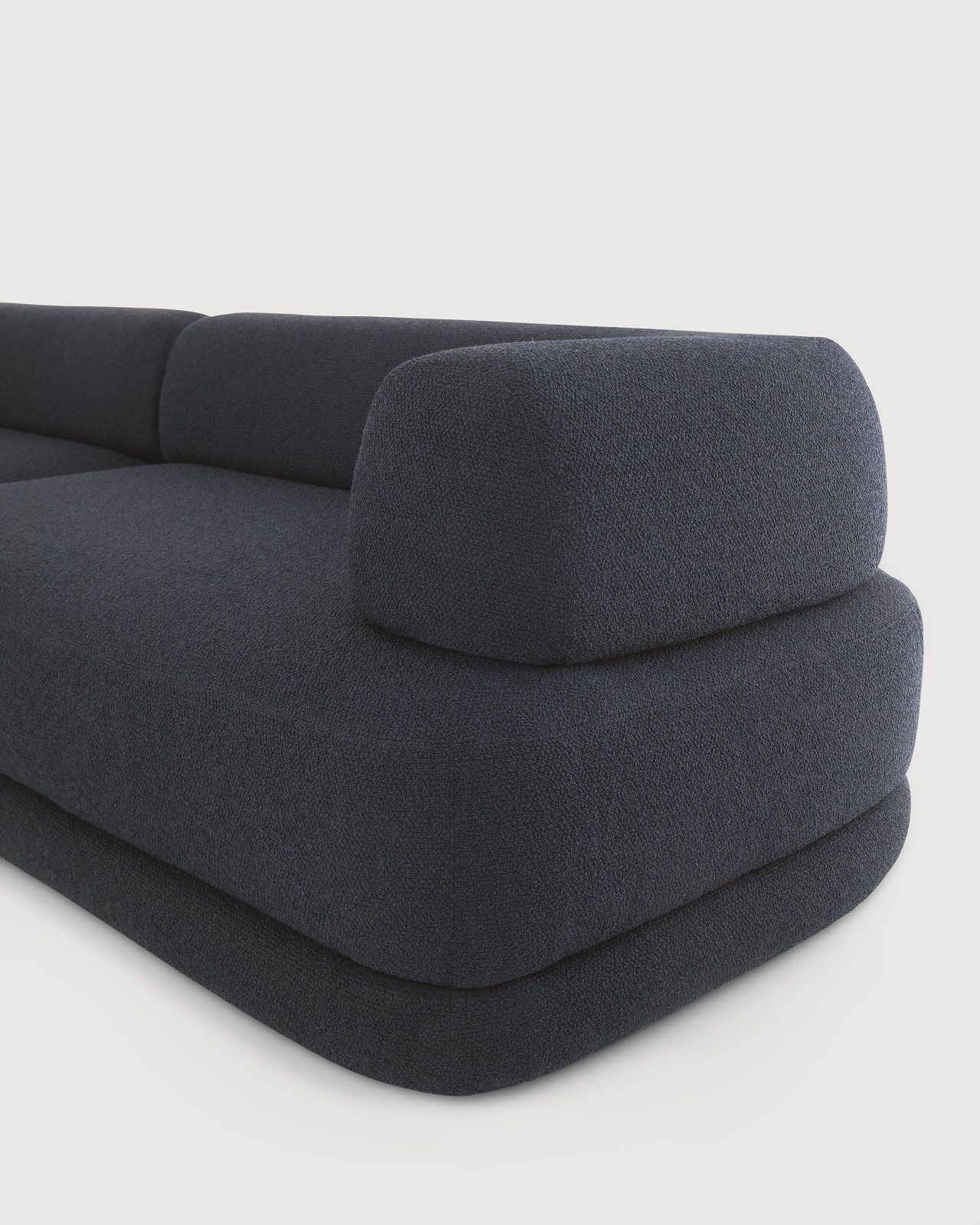 Die weiche Skulptur mit Liebe zum Detail und zur Qualität besteht aus drei sich überlappenden Komfortebenen - Basis, Sitz und Rückenlehne. So ist das Sofa nicht nur ästhetisch ansprechend, sondern auch mühelos im Raum zu platzieren und wird schnell zum lässigen Mittelpunkt, der den Raum auflockert.