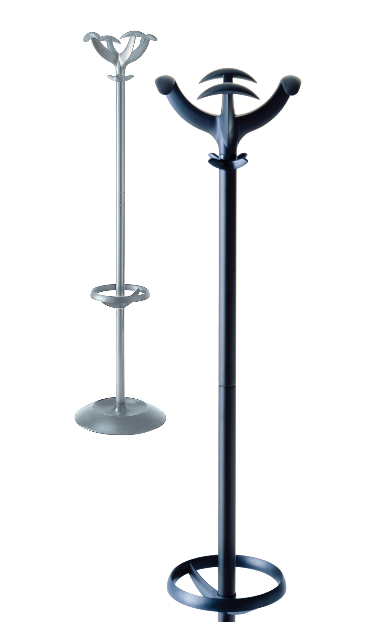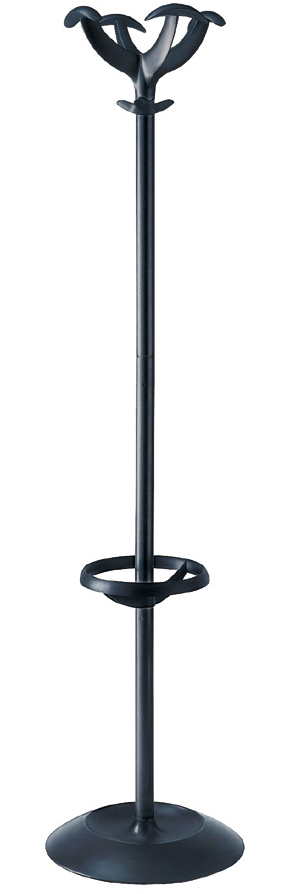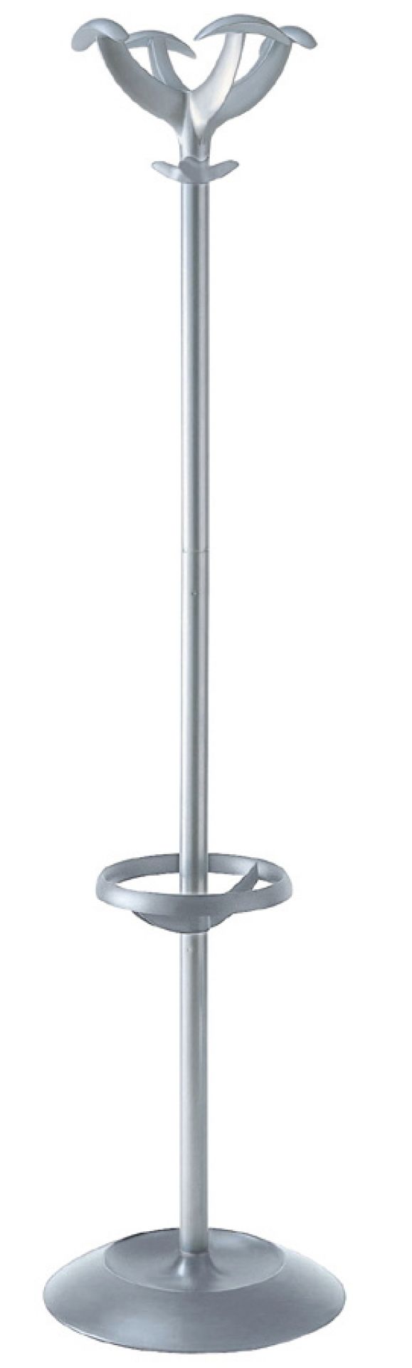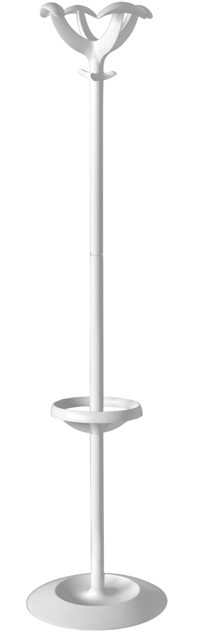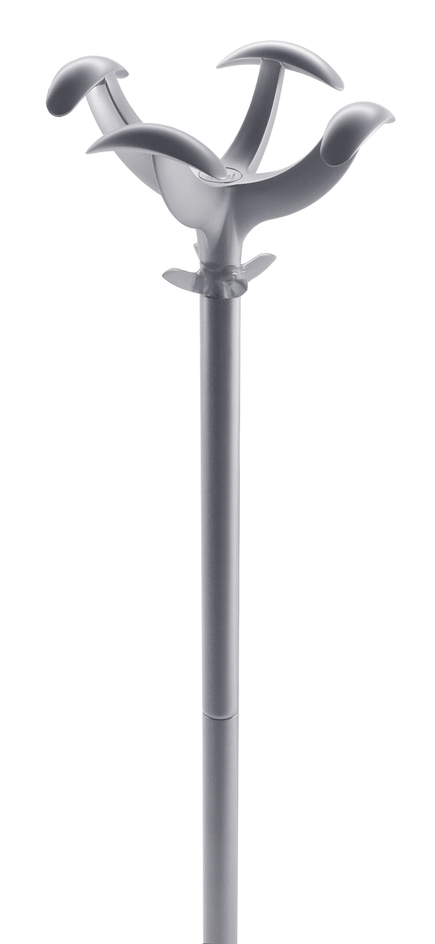 Der Kleiderständer besteht aus technischem Polymer und Stahl. Er ist 167 cm hoch bei einem Durchmesser von 40 cm.