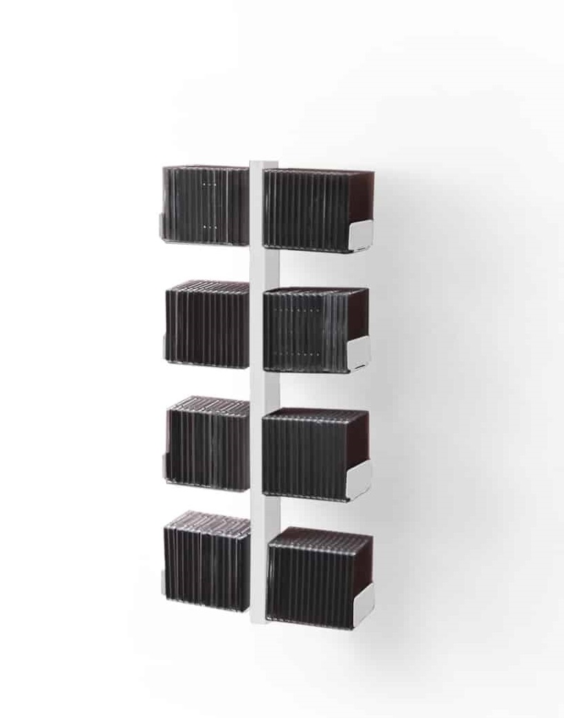 Mit dem CD- und DVD-Baum von Radius können Sie Ihre Musik- und Filmsammlung nicht nur ordnen, sondern auch gekonnt in Szene setzen. Das schlichte Regal hat Michael Rösing so entworfen, dass es den Anschein hat, als würden Ihre CDs nicht auf Regalbrettern stehen, sondern schwerelos im Raum schweben.