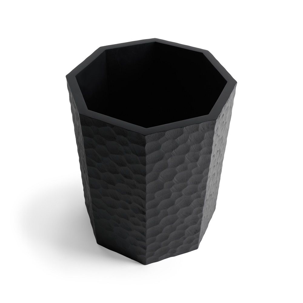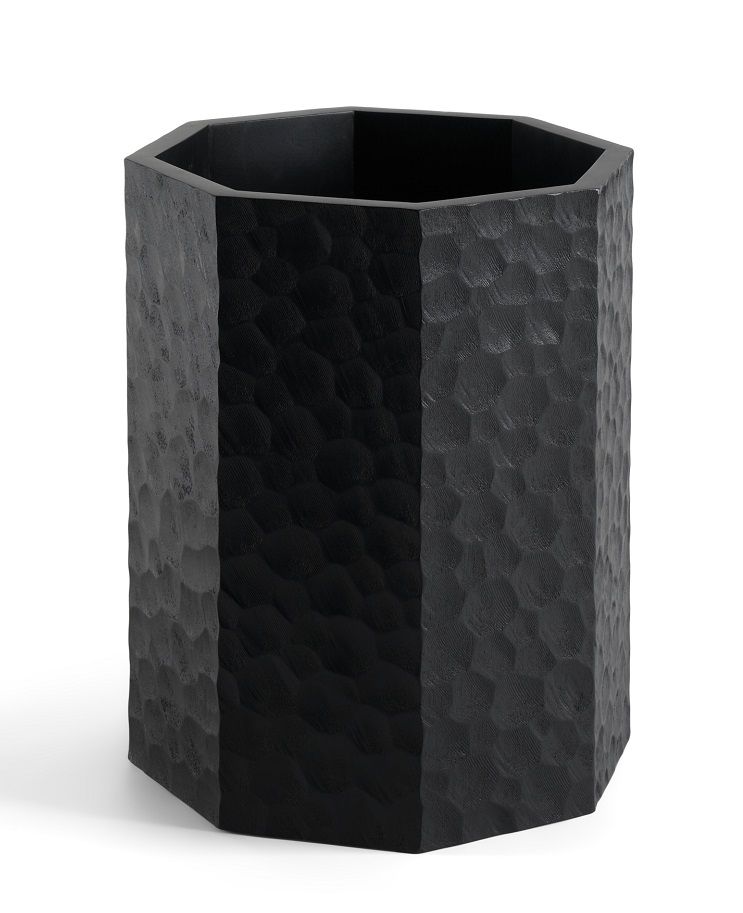 Der Papierkorb wird handgefertigt aus schwarz gefärbtem Mahagoni Holz mit Lackierung auf Wasserbasis. Er ist 28 cm im Durchmesser und 35 cm in der Höhe. Der Papierkorb wiegt 3 kg.