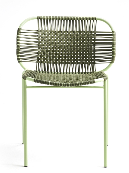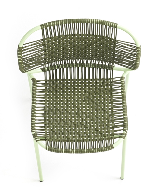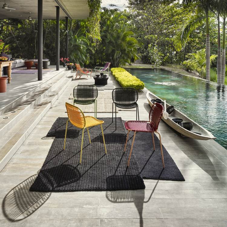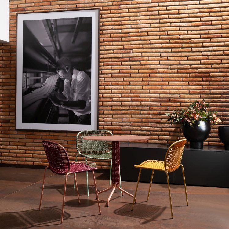 Die Webtechnik, die die kolumbianischen artesanos und artesanas bei der Herstellung der Cielo, Caribe und Cartaganes-Möbelstücke anwenden, heißt "momposino". Diese Methode ist besonders in der Region Santa Marta an der Karibikküste beliebt. Die farbigen Schnüre bestehen aus recyceltem PVC und werden von Hand um einen Rahmen aus feuerverzinktem Stahl geflochten, wodurch verschiedene Muster entstehen.