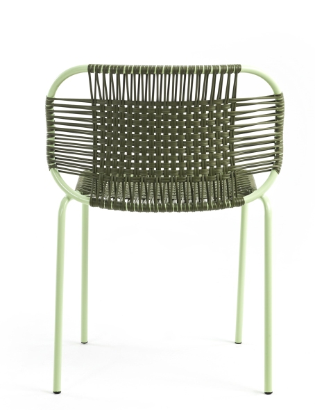 Der Stuhl besteht aus einem pulverbeschichteten Stahlgestell und einer Sitz- und Rückenfläche aus gewebten PVC-Schnüren, die aus recyceltem Plastik hergestellt werden. Er ist 56 cm breit, 51,4 cm tief und 78 cm hoch. Die Sitzhöhe beträgt 46 cm und die Sitztiefe 43,4 cm.