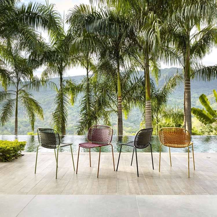 Leicht, stapelbar und bunt – der Cielo Stuhl von ames ist sowohl im Innen- als auch im Außenbereich ein farbenfroher Hingucker. Er wurde von Sebastian Herkner entworfen, der sich bei der Farbwahl von der bunten Lebendigkeit Kolumbiens inspirieren ließ.