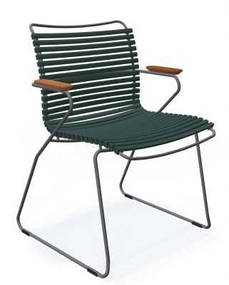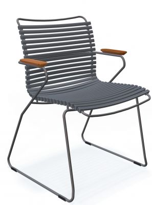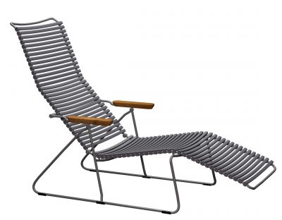 Das Gestell ist aus pulverbeschichtetem Metall in der Farbe Grau gefertigt. Die Lamellen bestehen aus Kunststoff, die Armlehnen aus hochwertigem Bambusholz. Das Bambusholz ist vorbehandelt, über eine regelmäßige Pflege mit einem Schuss Öl (ein Öl, das für Bambus geeignet ist) würde sich der Click Liegestuhl sehr freuen. Die Kufen sind zudem mit schützenden Gleitern ausgestattet.