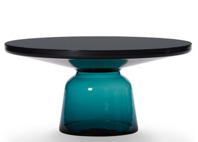 Bell Coffee Table Couchtisch mit Stahlplatte und blauem Glasfuß von ClassiCon.