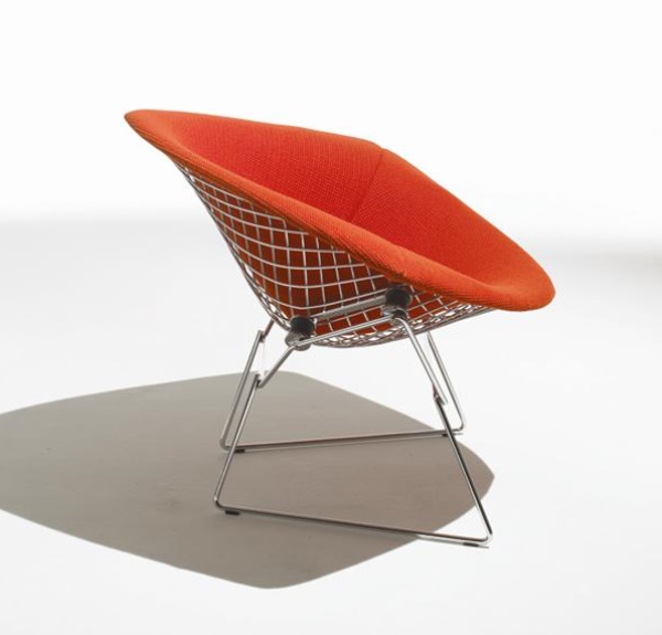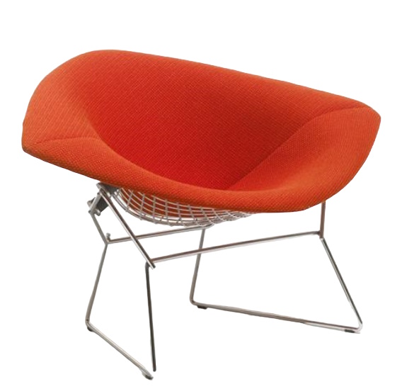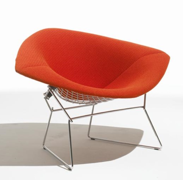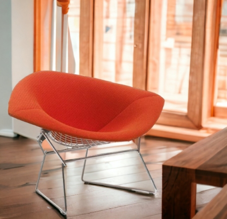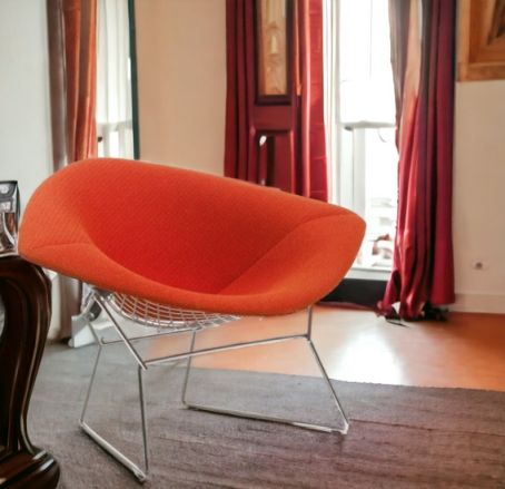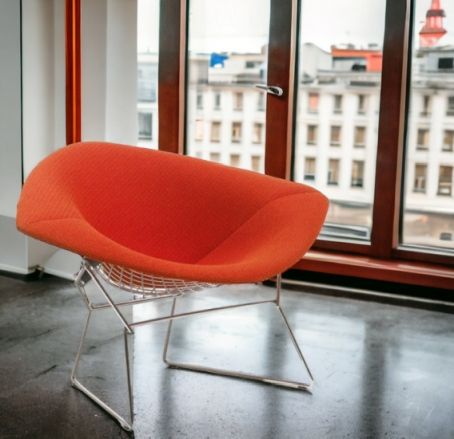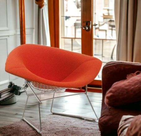 Modernes Design verbunden mit klassischer Eleganz -  Der Knoll International Sessel in der großen Ausführung von Harry Bertoia. Der große Diamond Sessel ist wo er auch steht und Hingucker. Hinsetzen ist eine Muss! Faszinierend wirken die gebogenen Rundstäbe der Bertoia Diamond Kollektion.