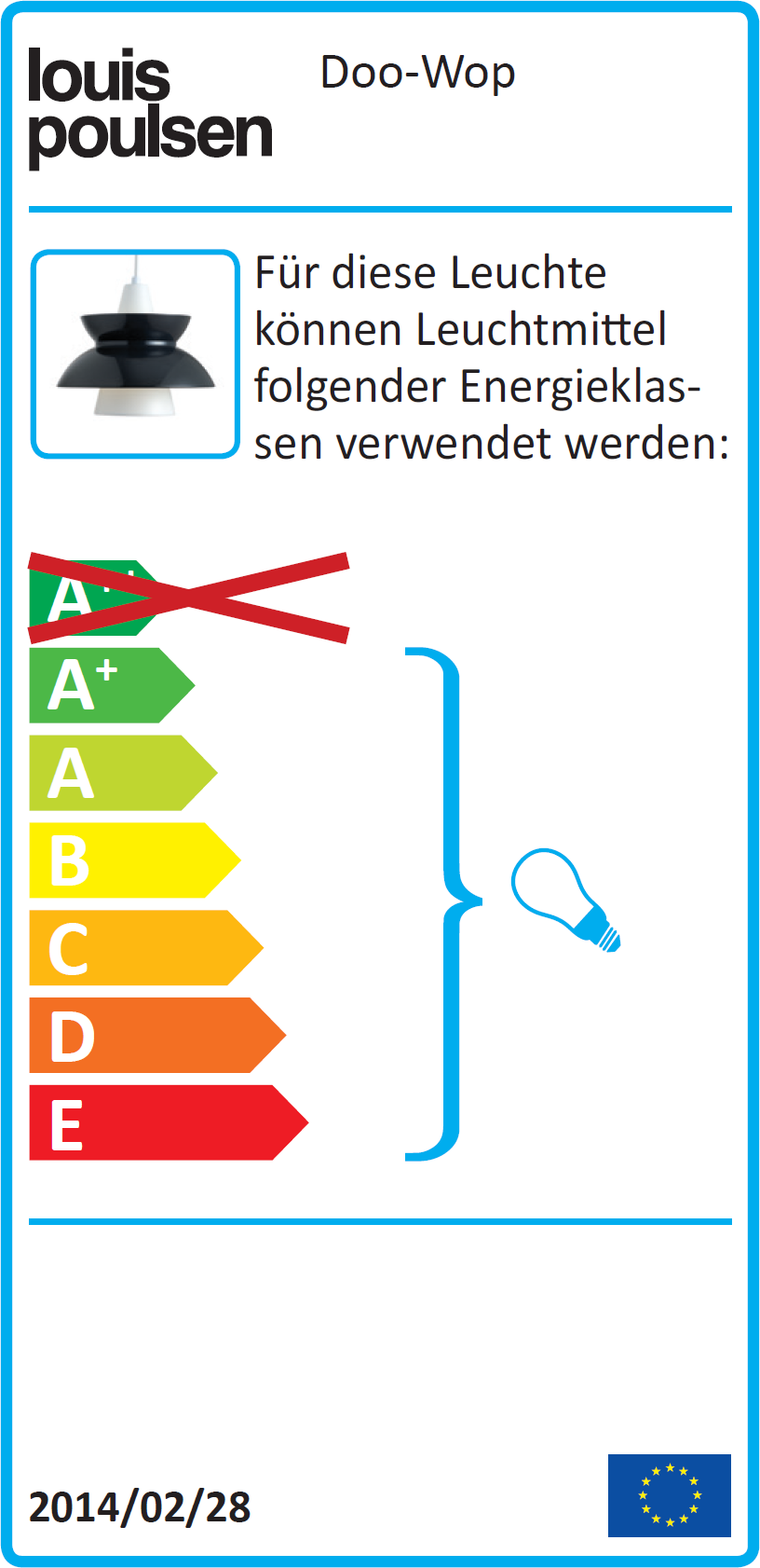 Energieeffizienzklasse Leuchtmittel Geeignet für Leuchtmittel der Energieklassen A+, A, B, C, D, E.