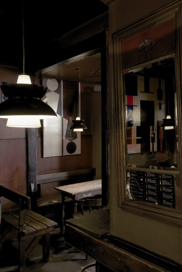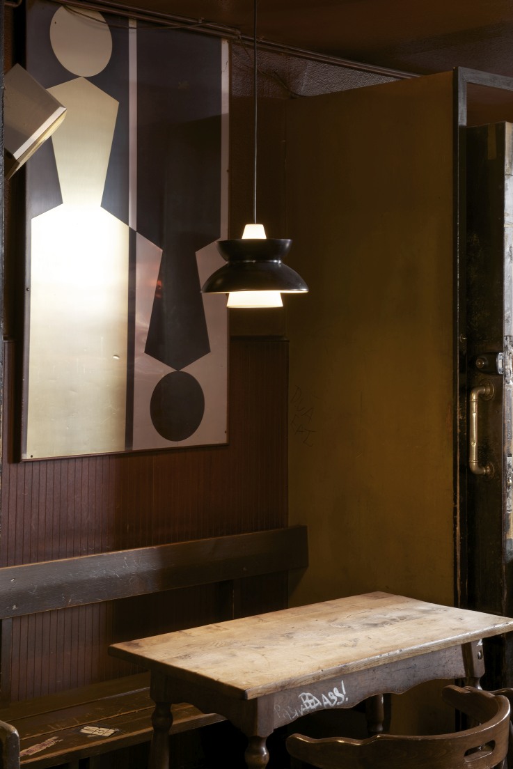 Die Leuchte verbreitet vor allem nach unten gerichtet eine sanfte Beleuchtung über dem weiß lackierten, kegelförmigen inneren Reflektor.