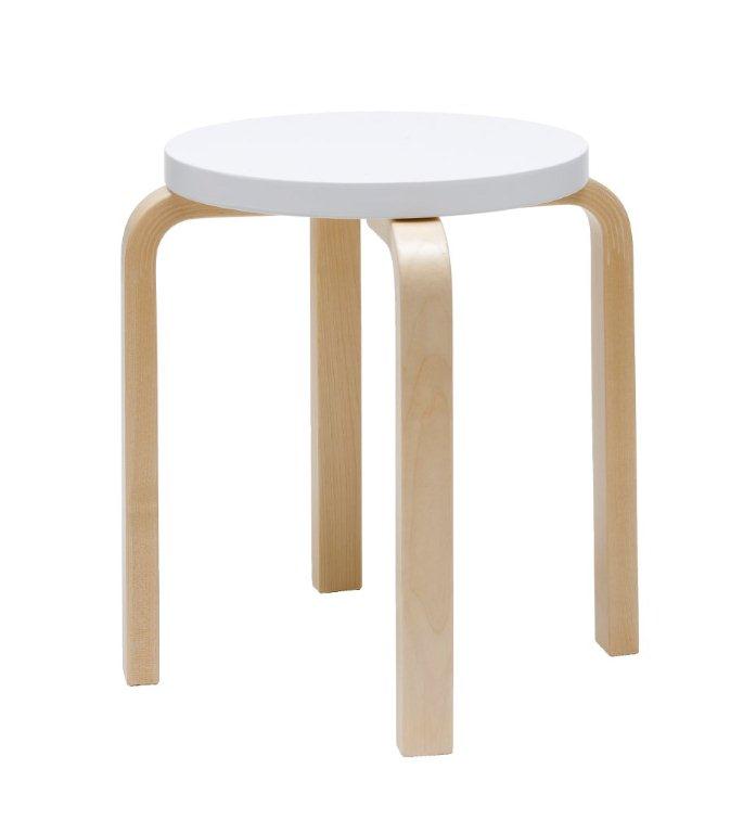 Ähnlich wie sein kleiner Bruder auf 3 Beinen, der ebenfalls bei uns erhältliche Hocker 60 von Artek, ist auch der E60 aus Finnland eine Stilikone unter den Designermöbeln. 1933 wurde der runde Hocker von Designer Alvar erstmals in Finnland präsentiert und galt schnell als Sensation in der Welt des skandinavischen Designs. Die Faszination der von Designer Alvar Aaltos entwickelten Technik des gebogenen Holzes ist bis heute weltweit geblieben. Ein gerades Stück Birkenholz wird an einem Ende in Faserrichtung aufgesägt, so entsteht ein Fächer. Dünne Furnierstücke werden in die Nuten geklebt, es ergibt sich eine Struktur, die bei Erhitzen oder Dämpfen des Holzes gebogen werden kann. Danach kann das in L-Form gebogene Holz einfach am Sitz befestigt werden. Genau so ist auch der Hocker E 60 entstanden, der damals wie heute auch gerne auch als Beistelltischchen verwendet wurde und wird. Die klassische und schlichte Birkenholzoptik wirkt in Kombination mit dem komplexen und aufwändigen Fertigungsverfahren absolut stimmig. Der E 60 Design-Hocker ist stapelbar und in verschiedenen Varianten, Oberflächen und Farben erhältlich. Es gibt den Klassiker auch mit Polsterung und verschiedenen Stoff- und Lederbezügen.