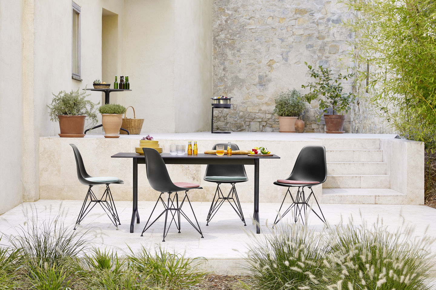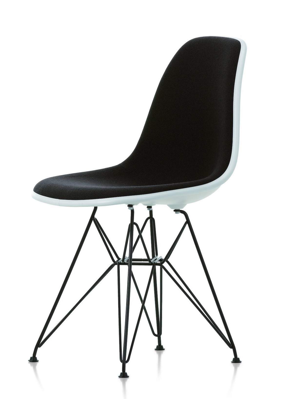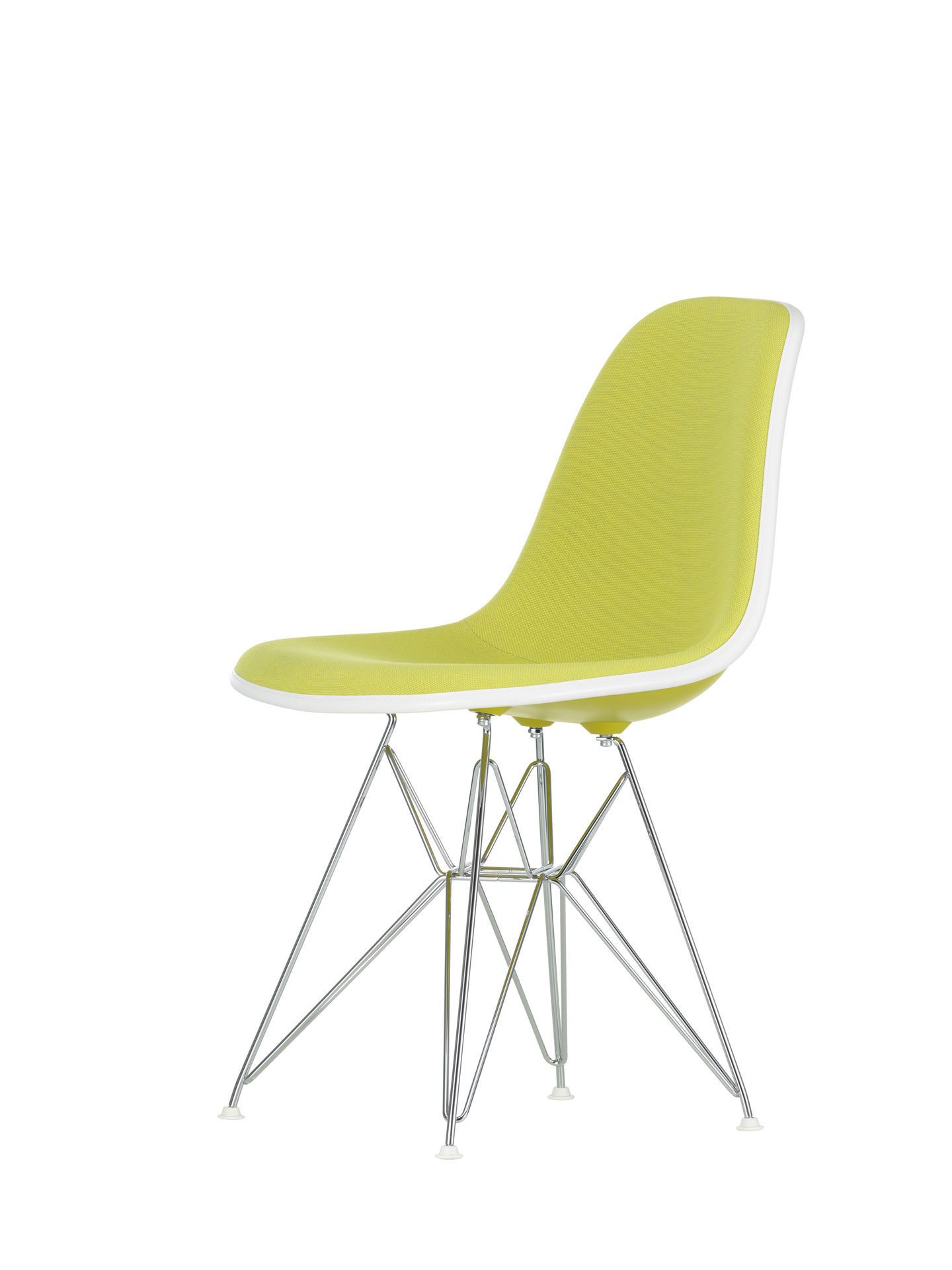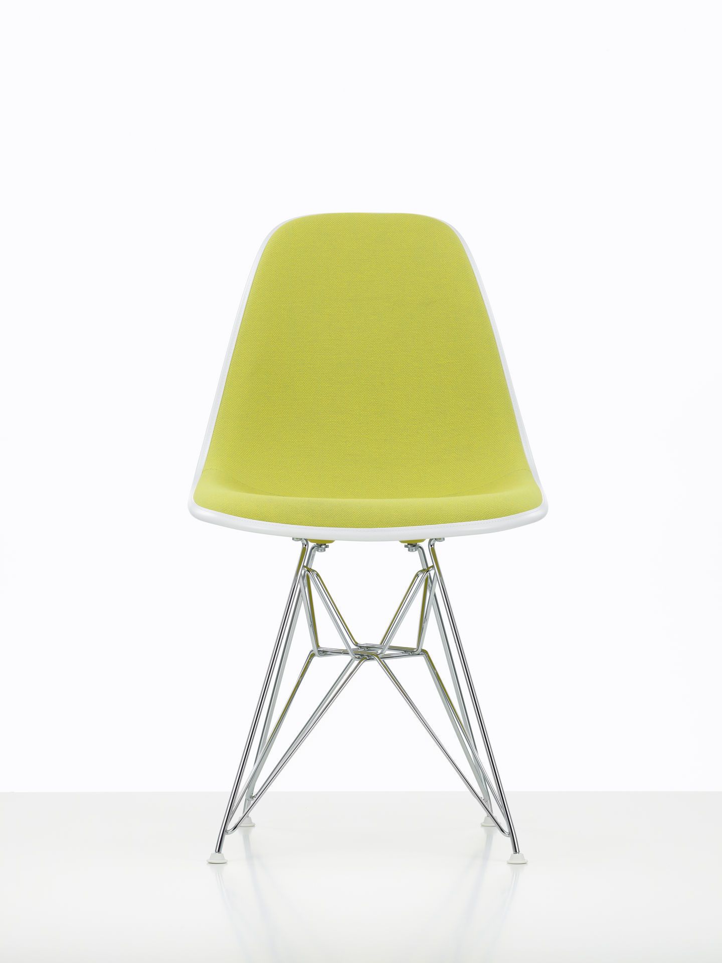 DSR steht als Abkürzung für "Dining Sidechair rod base". Die filigrane Konstruktion aus Stahldraht wird auch Eiffelturm-Untergestell genannt und verbindet eine konstruktive Stabilität mit einer formalen Leichtigkeit. Die verschiedenfarbigen, organischen Sitzschalen ermöglichen es den beliebten Klassiker DSR nach den eigenen Vorlieben anzupassen.