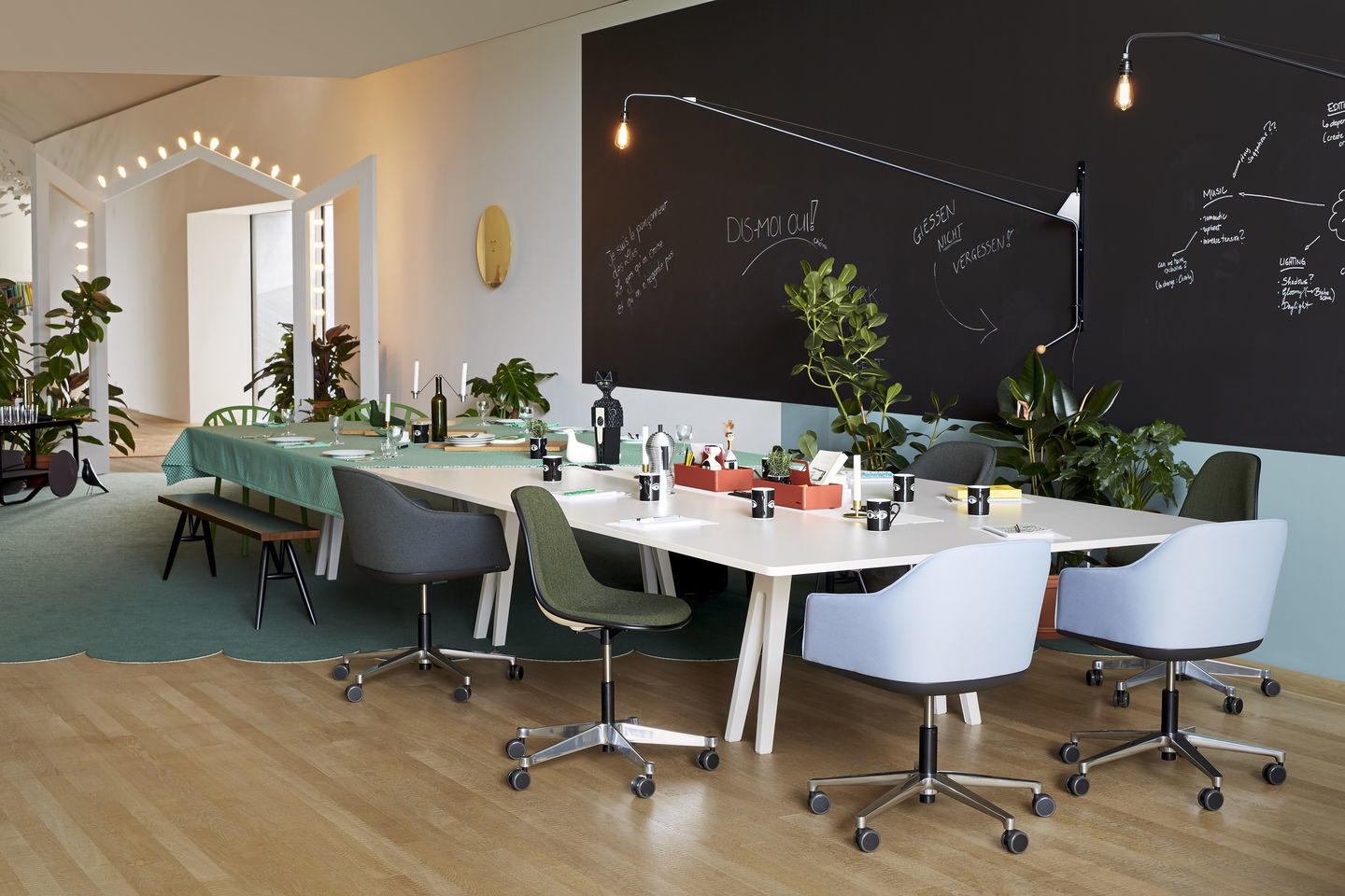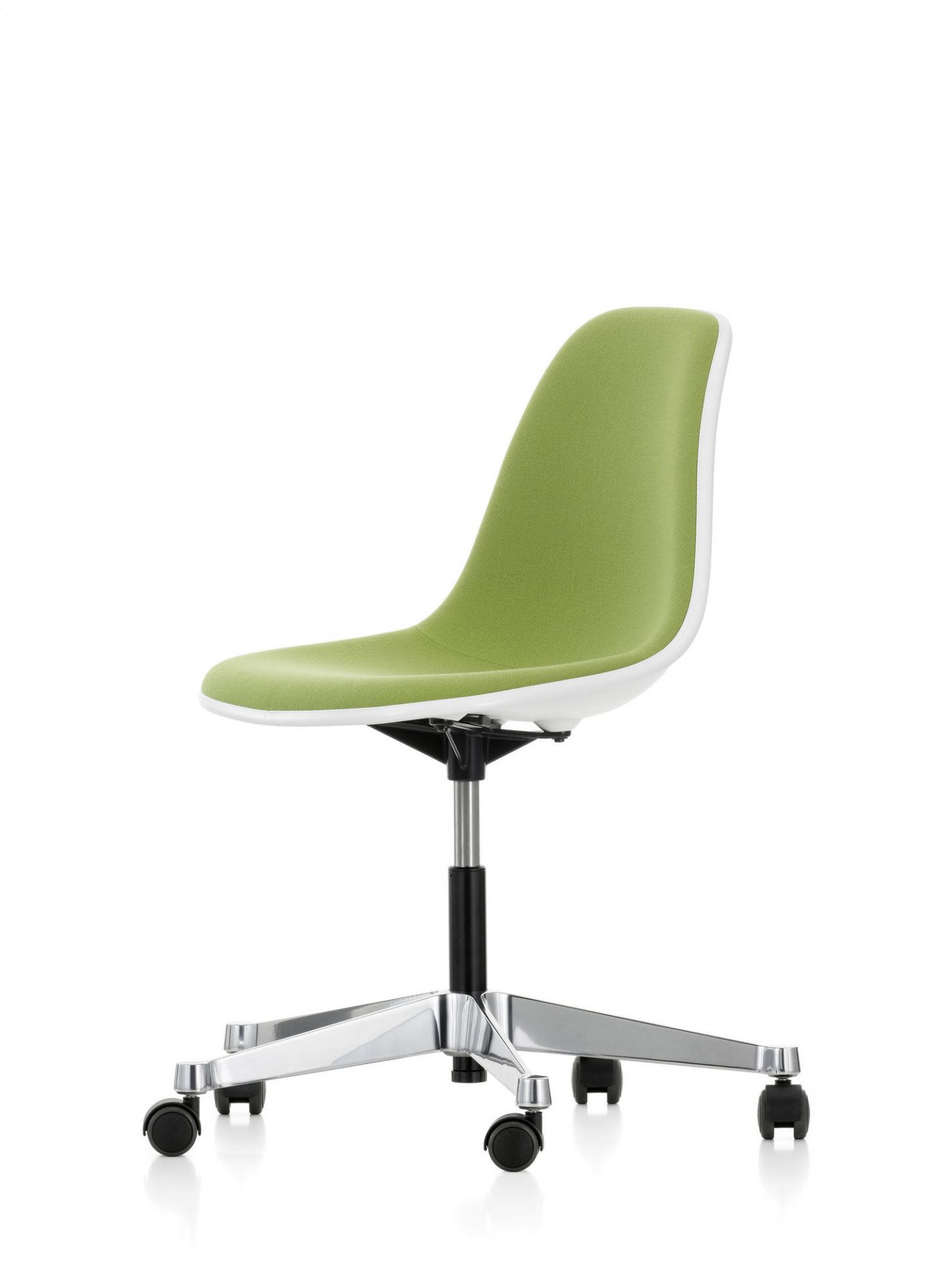 Die große Auswahl an Untergestellen lässt die Eames Plastic Chairs zu echten Allrounder werden. Der Eames Plastic Side Chair PSCC verfügt über ein höhenverstellbares Drehuntergestell und eine Sitzschale mit Komfortfederung – perfekt für das Büro!